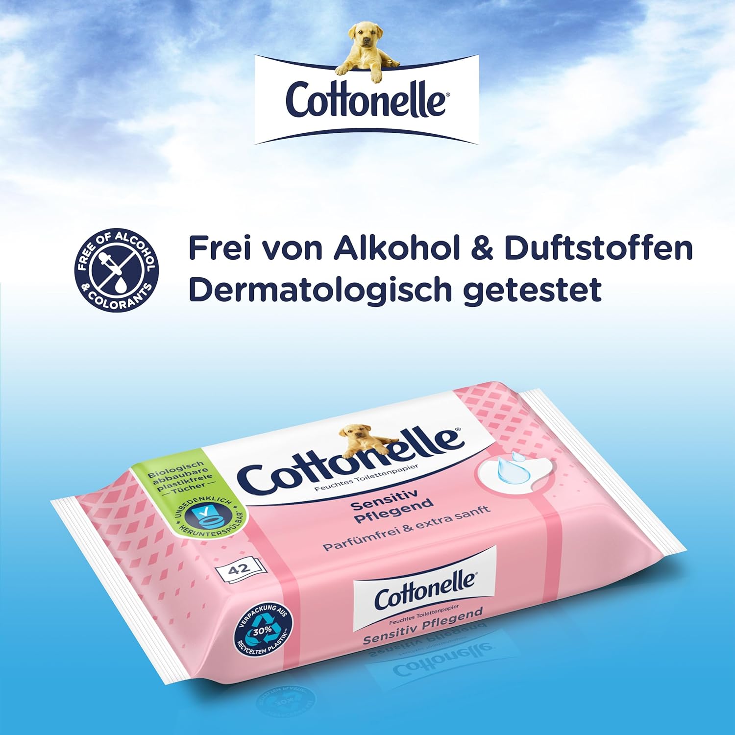 Cottonelle Moist Toilet Paper, Sensitive Nourishing – Fragrance-Free, Biodegradable, Plastic-Free, Resealable, Value Pack, 12 x 42 Wet Wipes