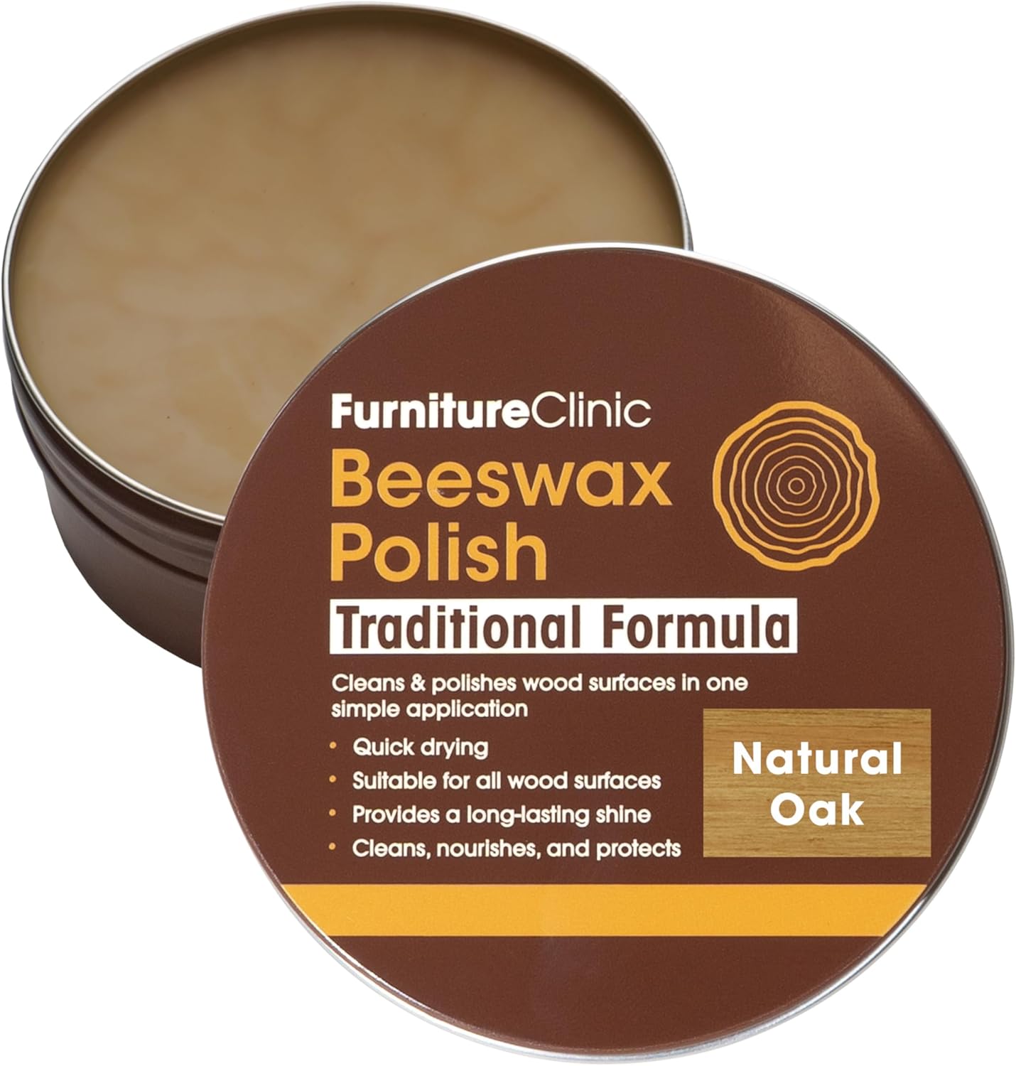 Furniture Clinic Beeswax Polish for Wood and Furniture – 200ml – Natural Beeswax for All Wood Types and Colours (Natural Oak)