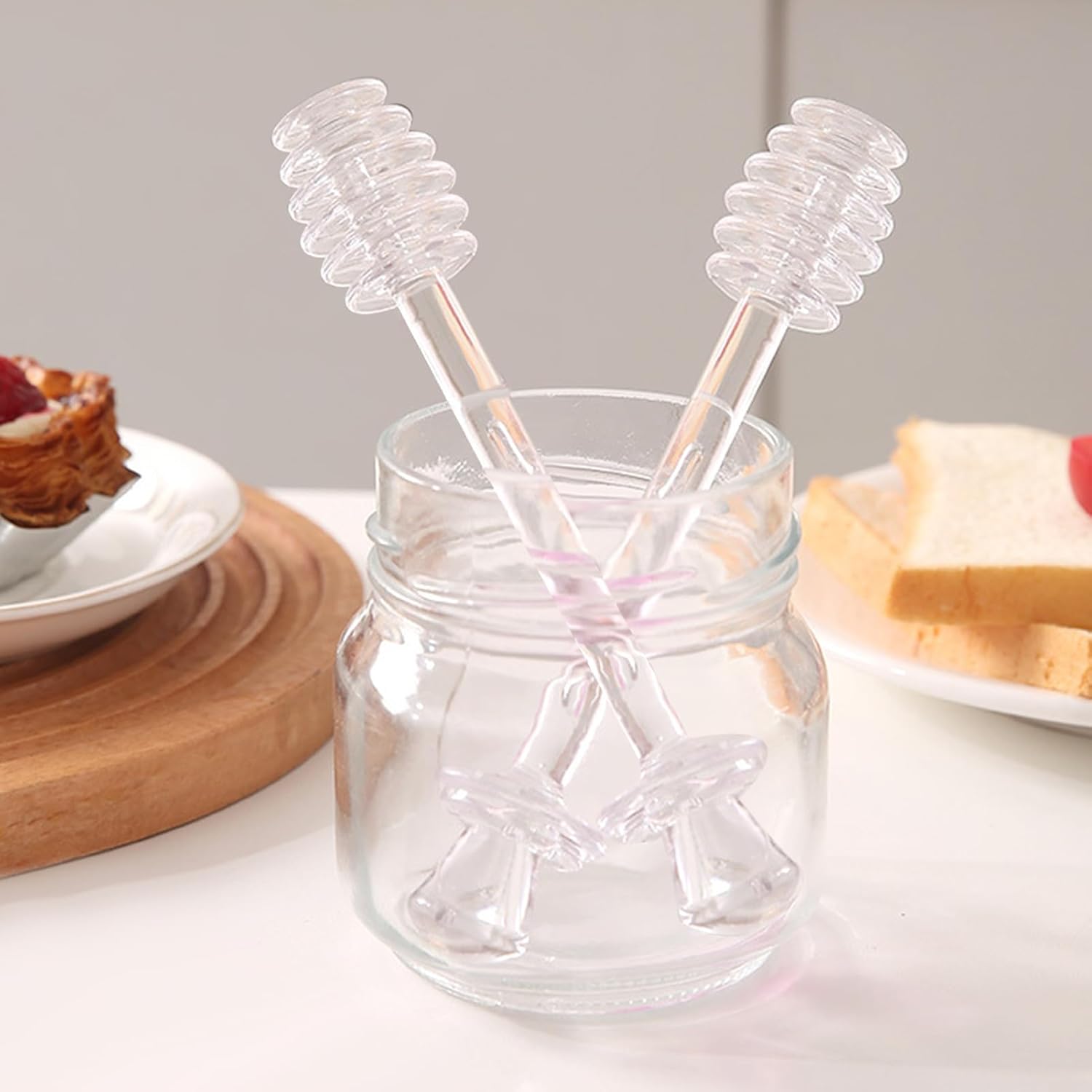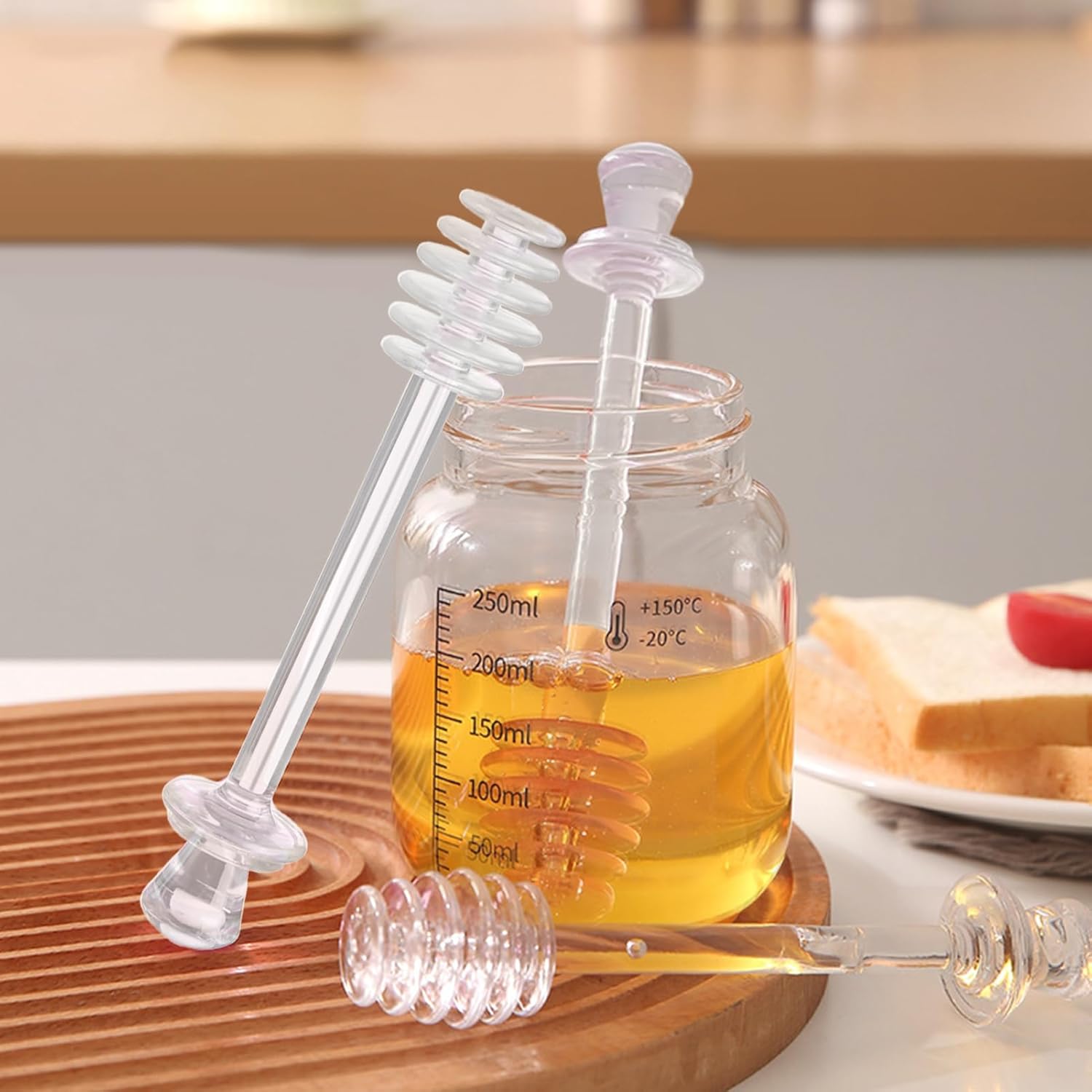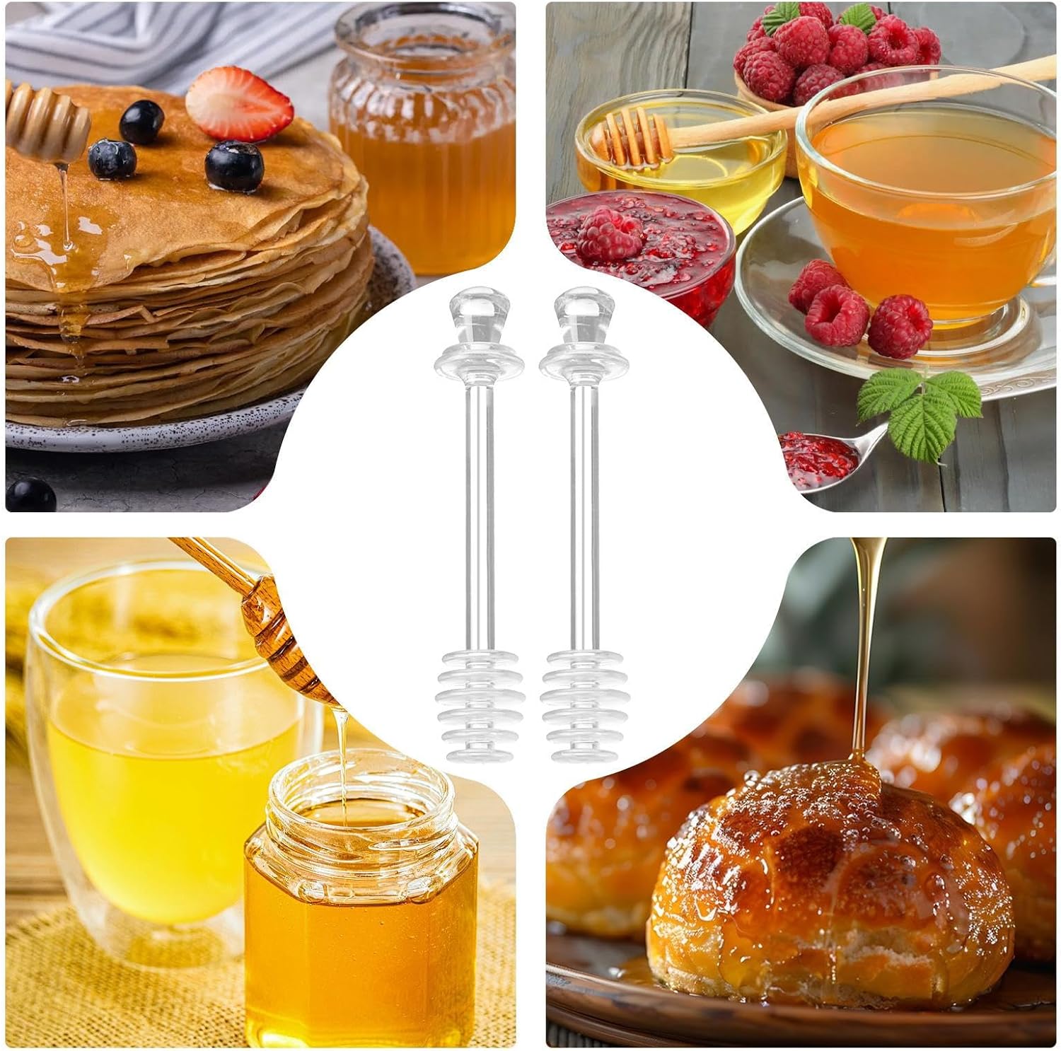 Honeycomb Sticks, 2 x Honey Spoon Set, Kitchen Utensils, Transparent Mixing Tool for Mixing Drinks, Syrup, Jam in Pots and Jars