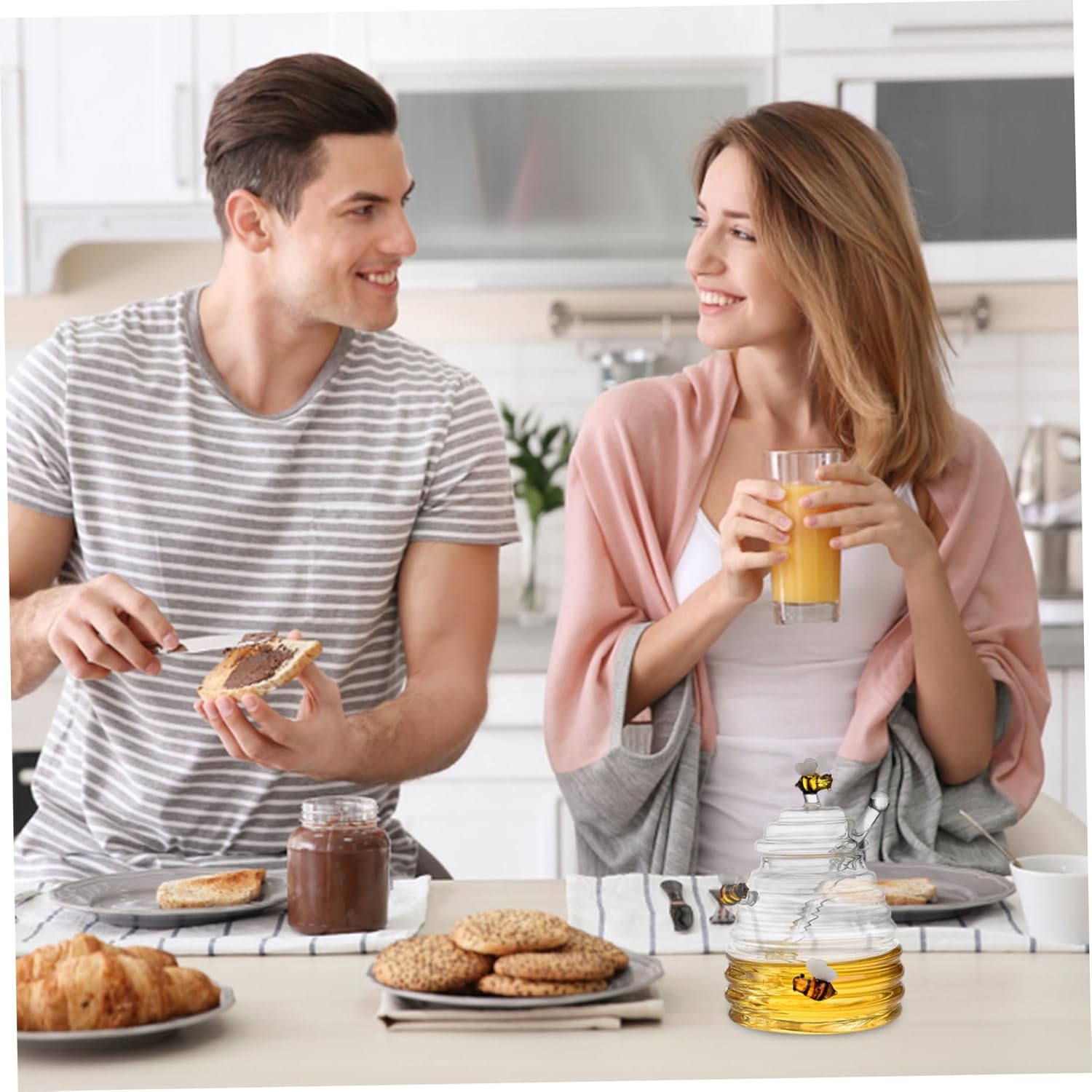 Honigtopf-Set, 500-ml-Honigglas aus Glas mit Schöpflöffel und Deckel, transparentes Glas mit niedlichen Honigbienen für Sirup