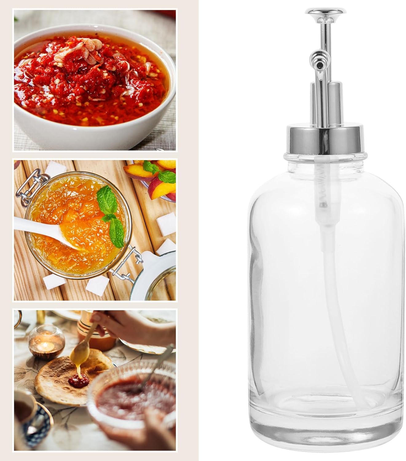 MAGICLULU Sirupspender aus Glas und Edelstahl mit Pumpendesign Sicher und Einfach zu Lagern zum Aufbewahren von Honig und Saft in Küche