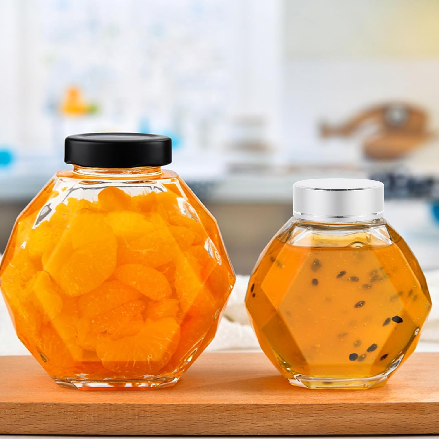 Die hervorragende Abdichtung sorgt dafür, dass Ihr Honig frisch bleibt. Das ansprechende Design der sechseckigen Form macht diese Gläser zu einem echten Blickfang in jeder Küche. Sie eignen sich auch hervorragend als Geschenk für Familie und Freunde.
