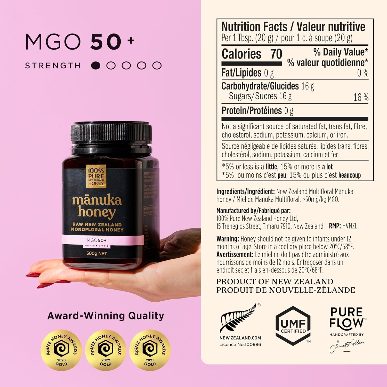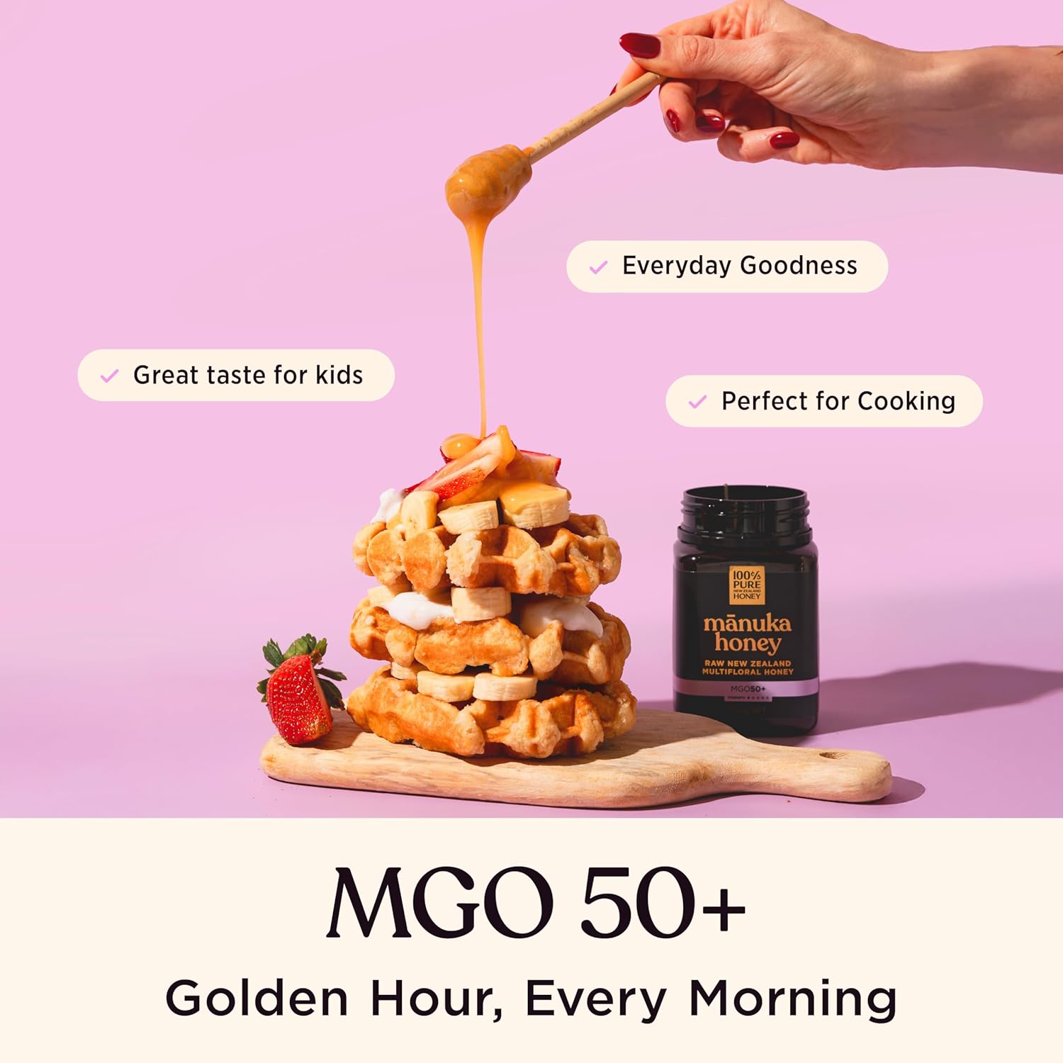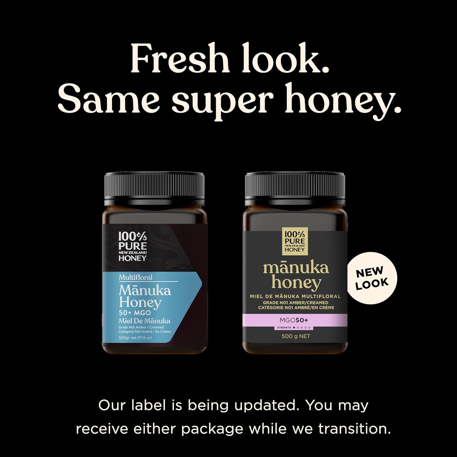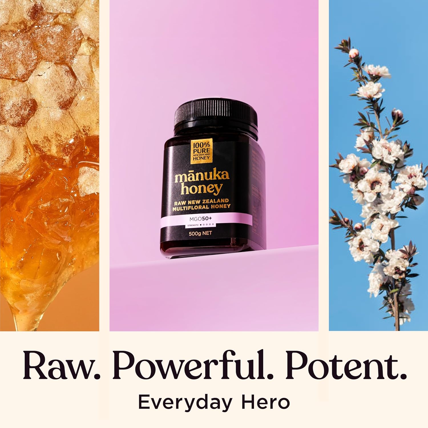 100% Pure New Zealand Honey – MGO 50+ Multifloral Mānuka Honey, Raw Mānuka, 17.6 Ounce (500g) (Pack of 1)