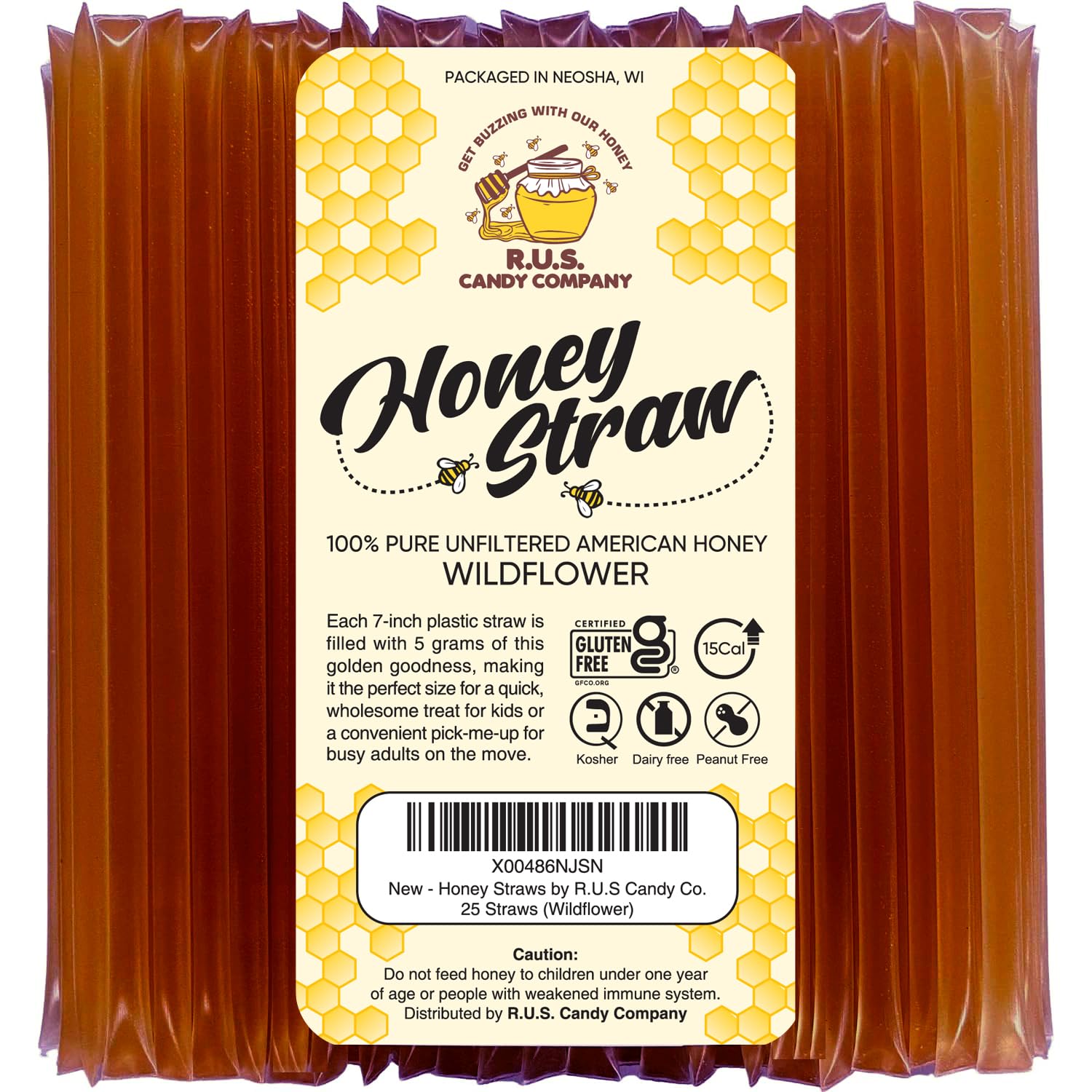 CONVENIENT PACK: Indulge in 25 individual 5 oz honey straws per order, offering a convenient way to add natural sweetness to your beverages or enjoy as a wholesome snack.