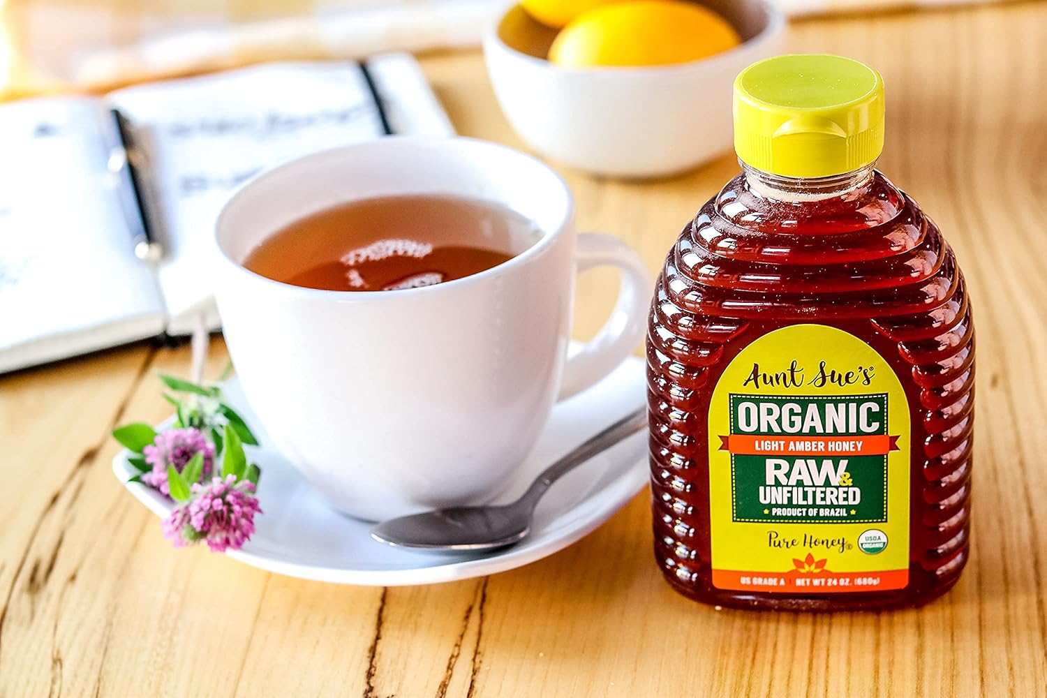 ORGANIC BRAZILIAN HONEY: With many different floral sources, Brazil produces some of the highest-quality honey in the world. And through trusted Brazilian beekeepers, we ensure that every delicious drop of our Aunt Sue’s Organic Raw & Unfiltered Honey is certified 100% organic honey.