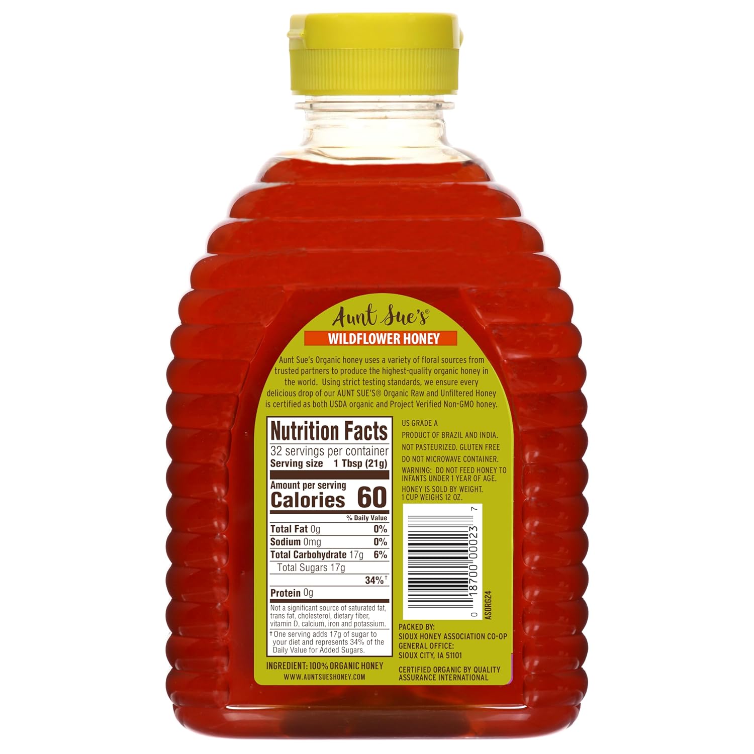 STRAINED, NOT FILTERED: Aunt Sue’s Organic Honey is strained, not filtered, allowing more of the pollen to remain in the honey for a bold flavor and all the benefits of natural pollen