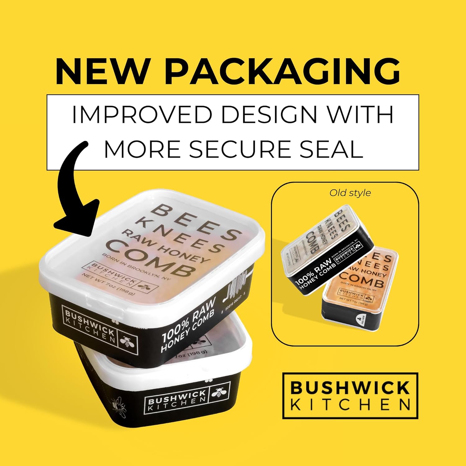 Bees Knees Raw Honeycomb, 100% Edible, All-Natural Gourmet Honeycomb in Double Sealed Packaging, Acacia Honey Comb with Sweet, Light Flavor, Foodie Gifts, Tea Gifts, Unique Gift Ideas (7 oz)