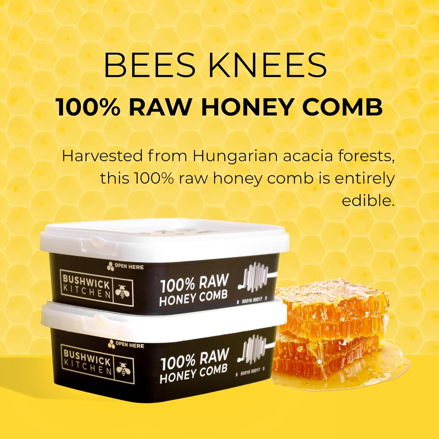 Bees Knees Raw Honeycomb is made from 100% edible, all-natural acacia honeycomb.