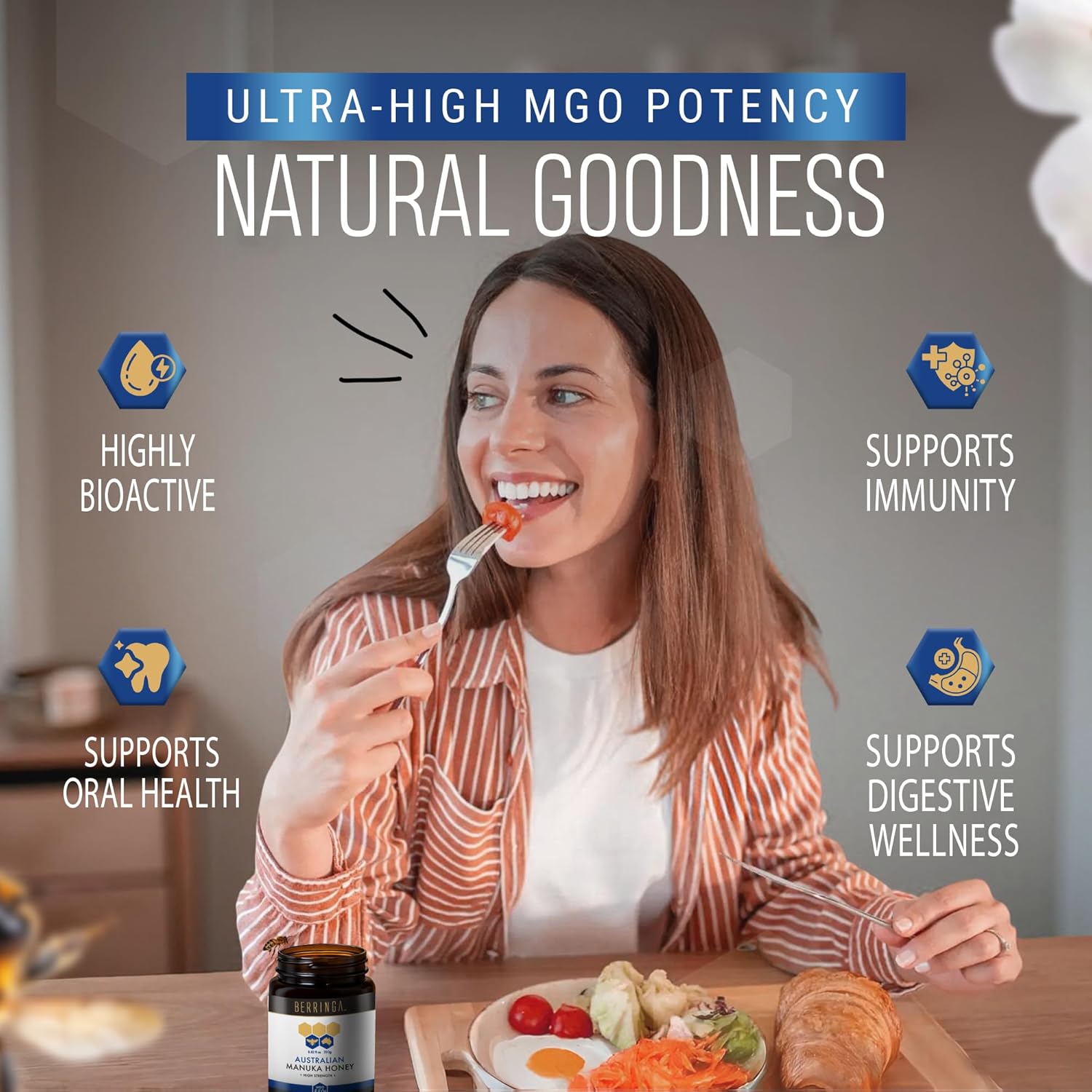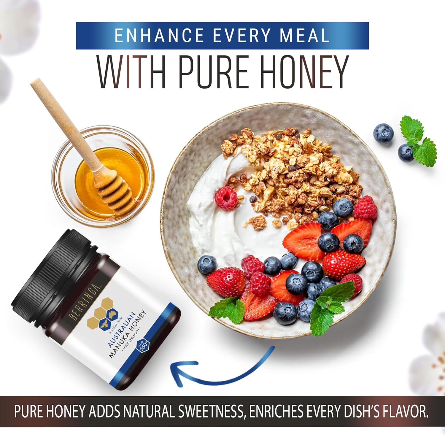 Berringa Manuka Honey MGO 550+ is a high-strength, organic honey that supports general wellbeing and digestive balance, sourced sustainably from Australia.