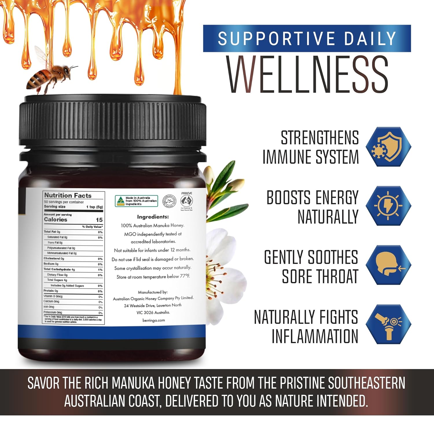 NATURAL WELLNESS SUPPORT – This high-strength Australian Manuka Honey MGO 550+ delivers immune-supporting properties to naturally aid digestion, energy, and overall wellbeing.