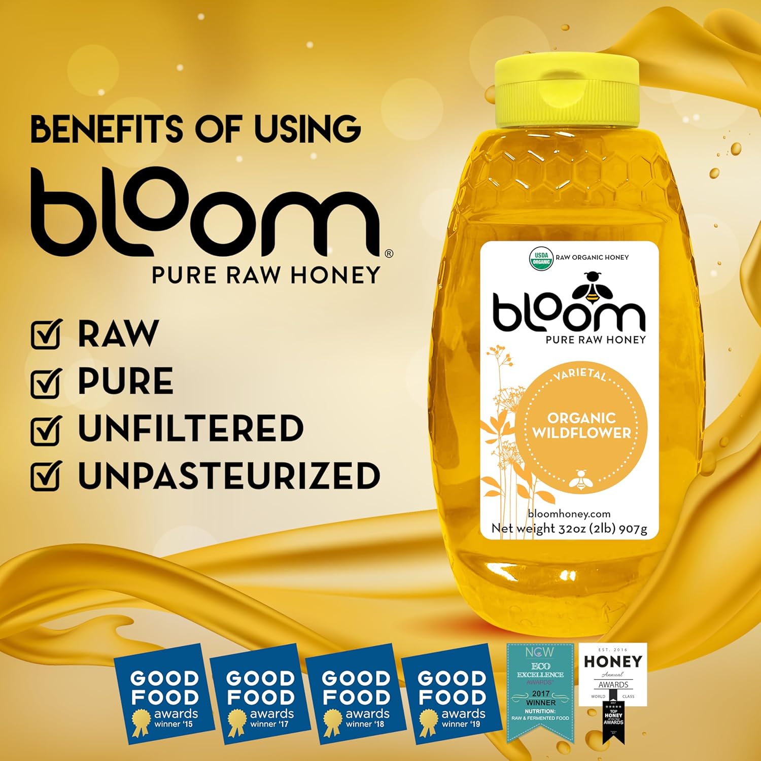 Our Honey Your Health: Raw honey Unfiltered contains polyphenols, natural compounds that act as powerful antioxidants to protect your body by trapping the free radical molecules and getting rid of them before damage occurs. Bloom Raw Unfiltered Honey