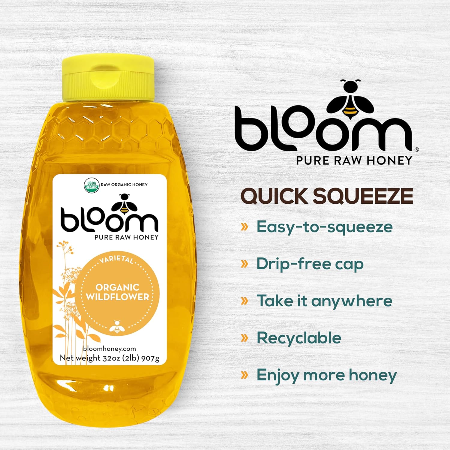Bloom Honey is made from 100% pure organic raw unfiltered and unpasteurized honey collected from a variety of wildflowers.