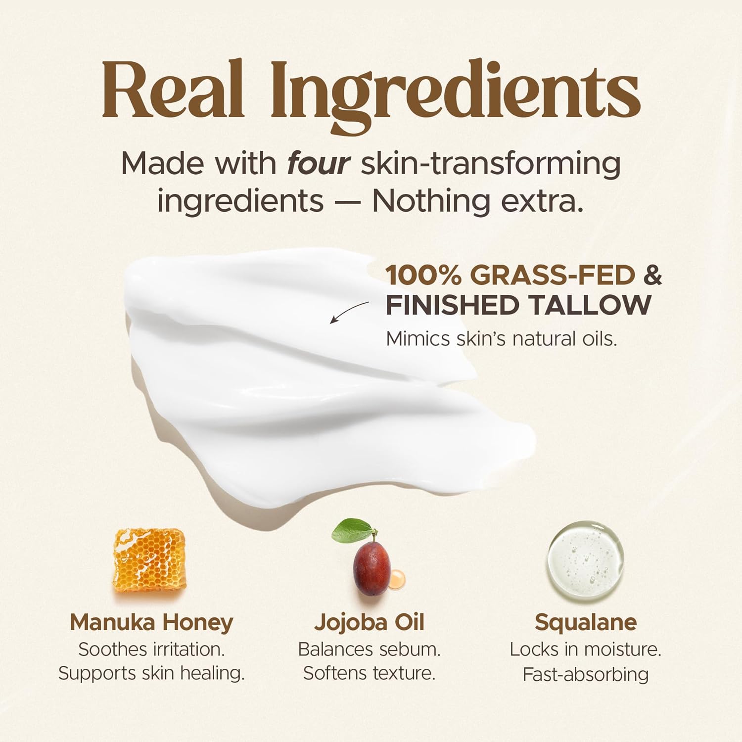 Deeply Nourishes & Restores Skin: Formulated with 100% grass-fed beef tallow, rich in bioavailable vitamins A, D, E & K to deeply moisturize, promote skin elasticity, and support natural repair—leaving skin soft, smooth, and radiant.