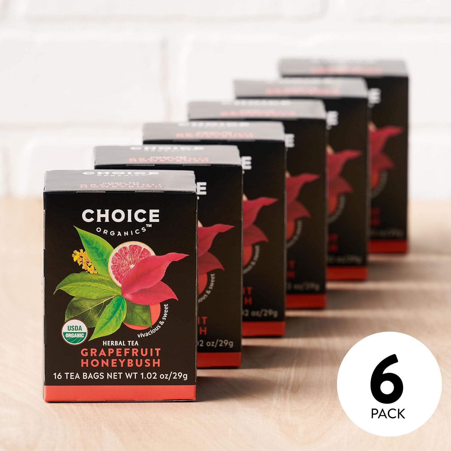 Choice Organic Grapefruit Honeybush Herbal Tea, Caffeine Free, 16 Bags (Pack Of 6)