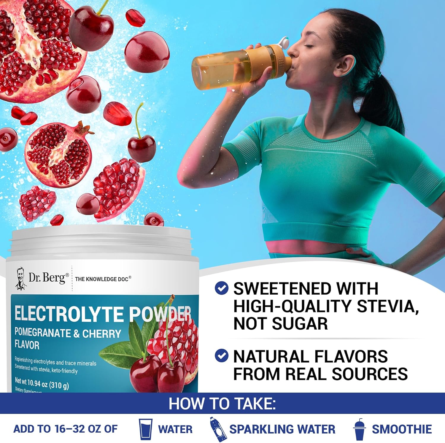 𝗘𝗟𝗘𝗖𝗧𝗥𝗢𝗟𝗬𝗧𝗘 𝗣𝗢𝗪𝗗𝗘𝗥 𝗡𝗢 𝗦𝗨𝗚𝗔𝗥 – Each serving contains 1000 mg of potassium and 40 mg of sodium from pink Himalayan salt. Ideal for replenishing electrolytes during physical activity or exposure to heat. Additionally, this electrolyte powder offers a very unique blend of calcium, magnesium, and trace mineral complex. This refreshing and delicious Pomegranate and Cherry flavor includes 50 servings.