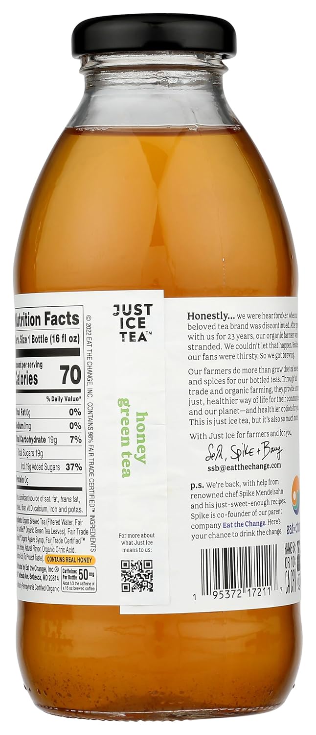 Eat The Change Just Ice Tea Organic Honey Green Tea, Kosher, 16 Fluid Ounces (Pack Of 12)