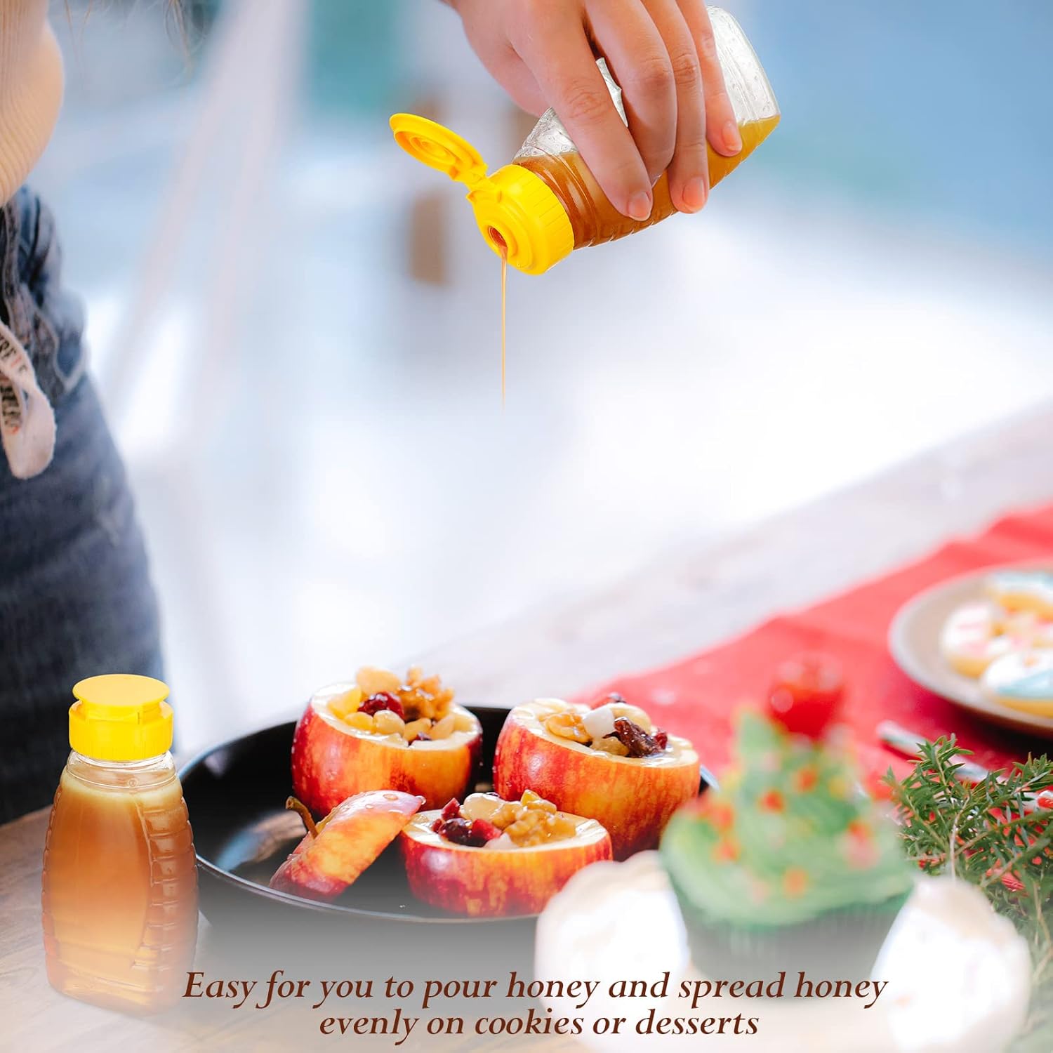 Safe and Reliable: this kind of honey container is mainly made of quality plastic material with exquisite workmanship, safe and odorless, lightweight but sturdy, refillable and leakproof, easy to squeeze and store, washable and reusable, not easy to fade, wear or break, offering you a lasting service