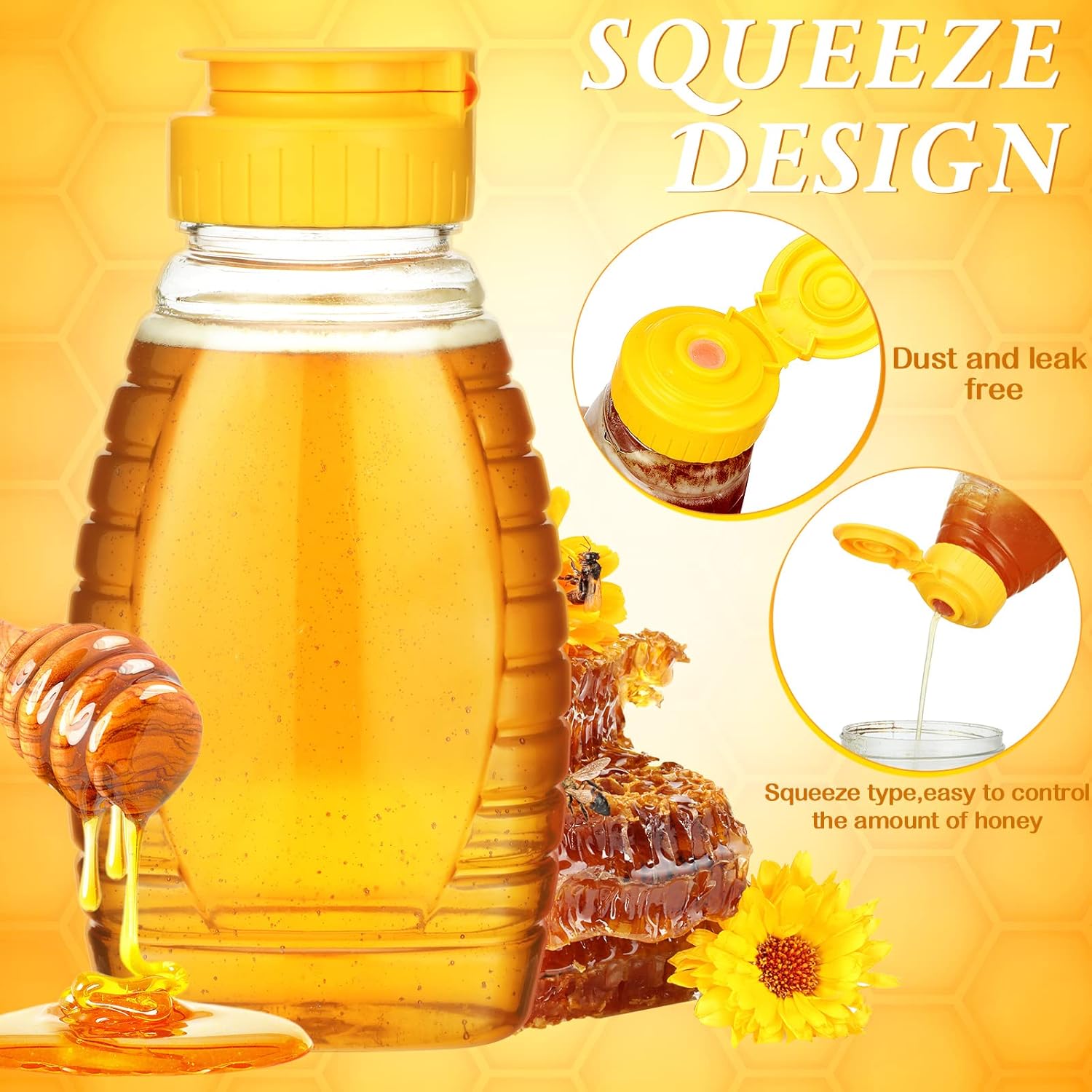 Easy to Squeeze: in view of your usage requirements, our honey bottles come with squeezable designs, so that you can easily control the amount of honey taken out, making it easier to pour honey from bottles; Even if it tipped over when the lid was lifted, the honey or liquid still remained inside