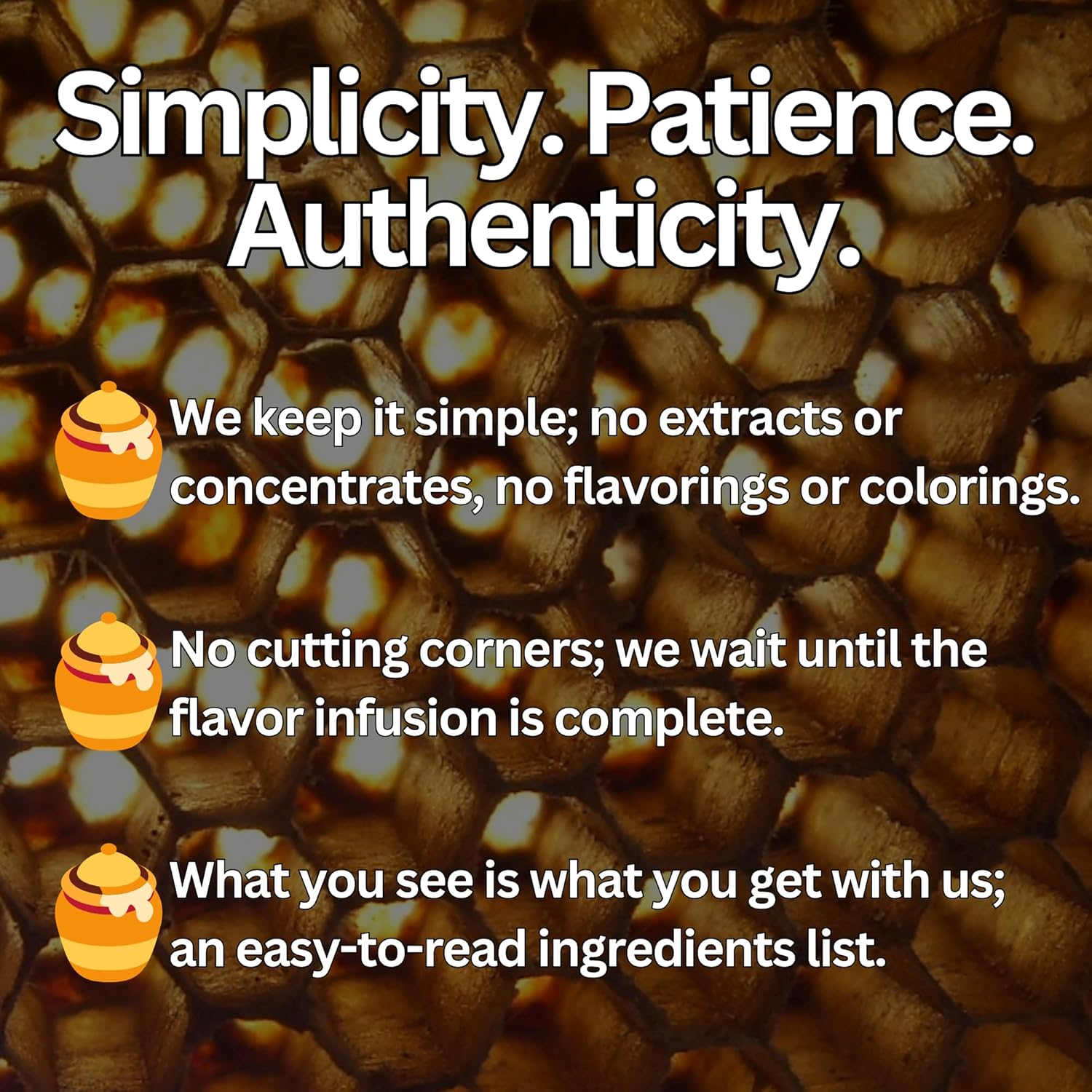 With a gentle heating of the honey to lightly filter the elderberry particles, the result is obvious; smooth, pristine, and one-of-a-kind.
