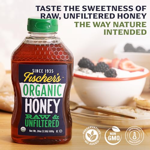 Fischer's 100% Organic Honey is made from pure, organic honey sourced from natural beekeeping practices.
