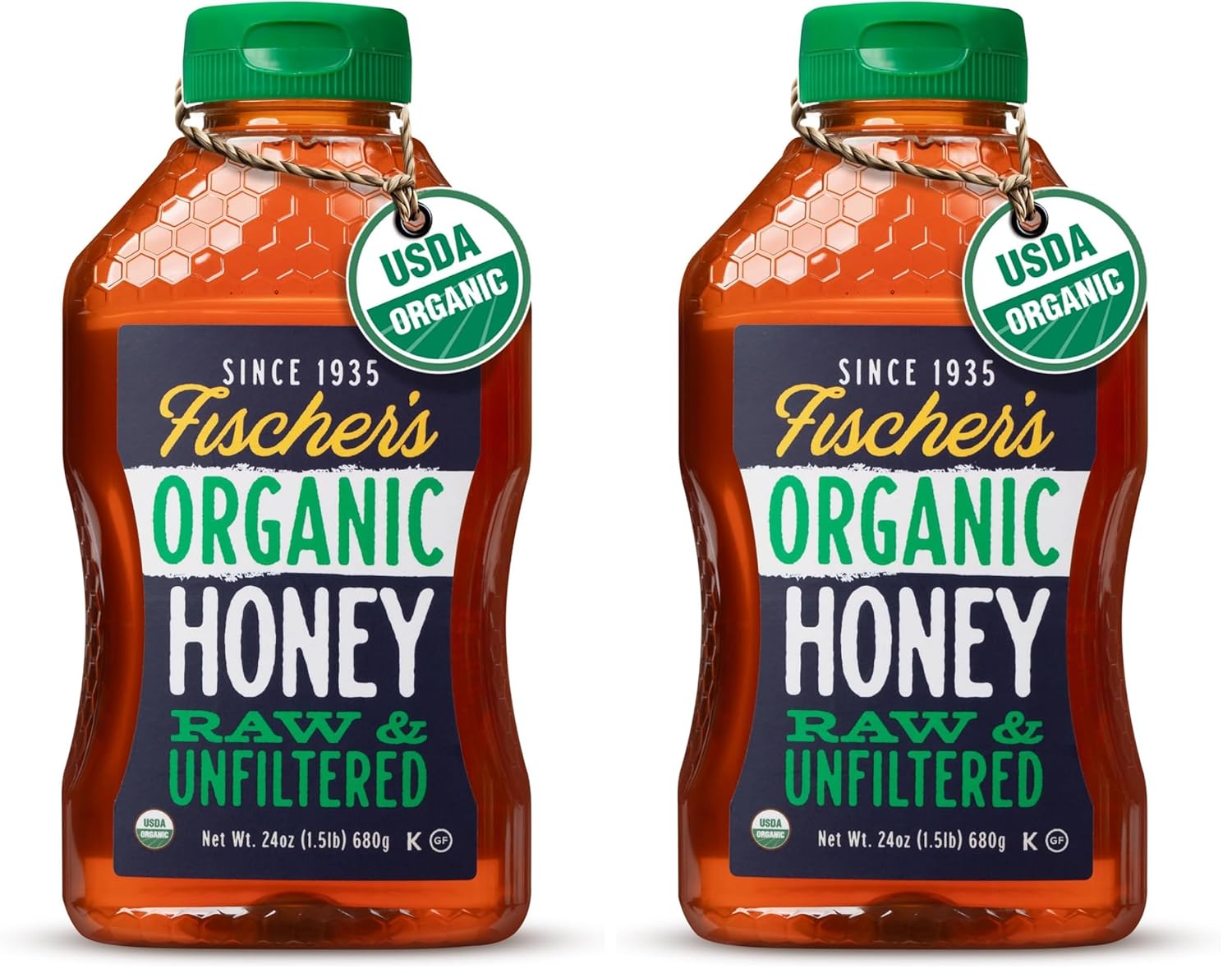 Fischer’s 100% Organic Honey, USDA Certified – Pure, Raw & Unfiltered Honey – All-Natural Sweetener – Rich Flavor Profile, Packed with Nutrients, 24 Oz (Pack of 2)