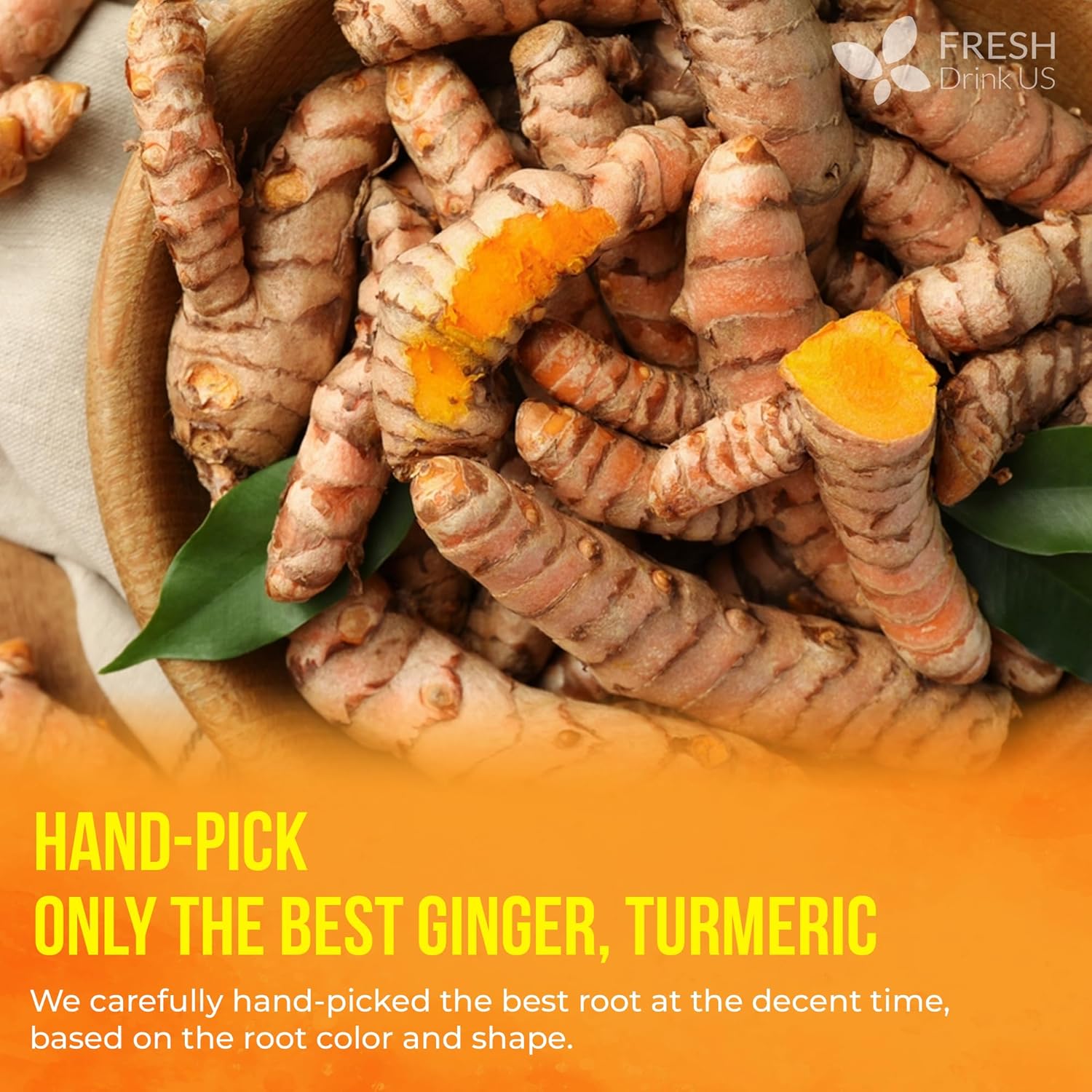 ☘️ FROM FRESHLY PICKED, NATURALLY DRIED TURMERIC & GINGER: The best Turmeric and Ginger are harvested at a decent time, washed with fresh water, dried in the sun, ground with years of experience to the best tea size, and carefully packed to preserve the flavor and distinct aromatic effect.