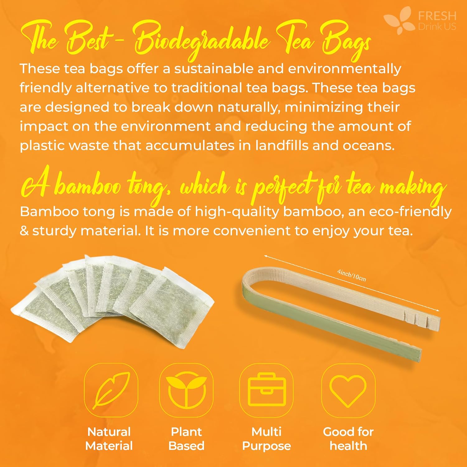 ☘️ BIODEGRADABLE TEA BAG – NATURAL MATERIAL: The tea bags are made of natural corn fiber, which is friendly for the environment. No Strings. No Wrapped. No Staples. No Adhesive. No Bleach. No Dyes – 100% Safety.