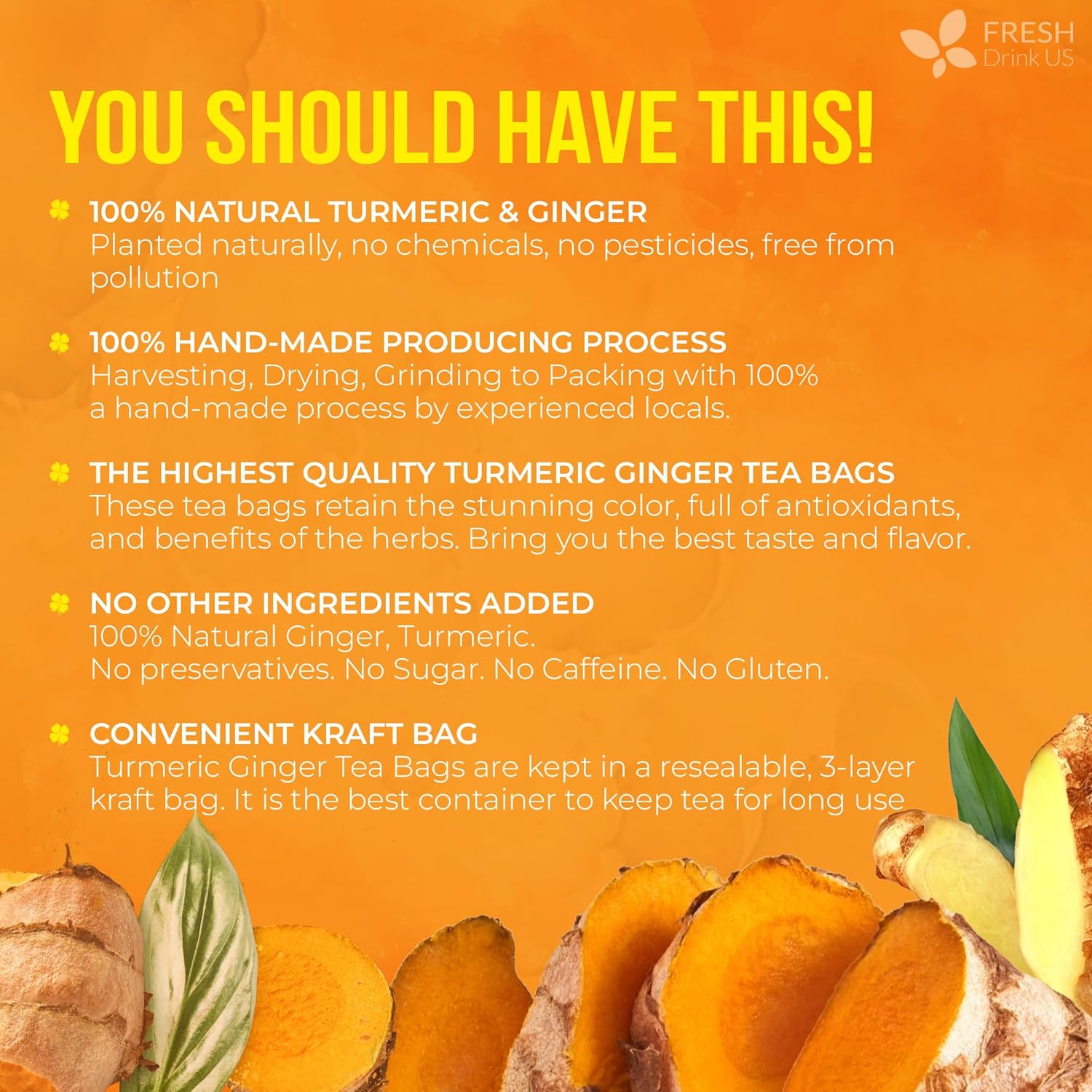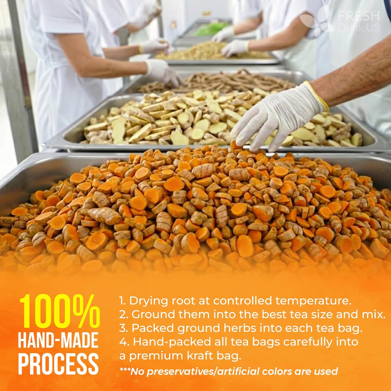 Be the first to review “FreshDrinkUS, Premium 135 Turmeric Ginger Tea Bags, 100% Natural Ingredients, Hand-made Blend of Turmeric and Ginger Herbal Tea, Eco-conscious Tea Bags. No Sugar, No Caffeine, No Gluten, Vegan.”
