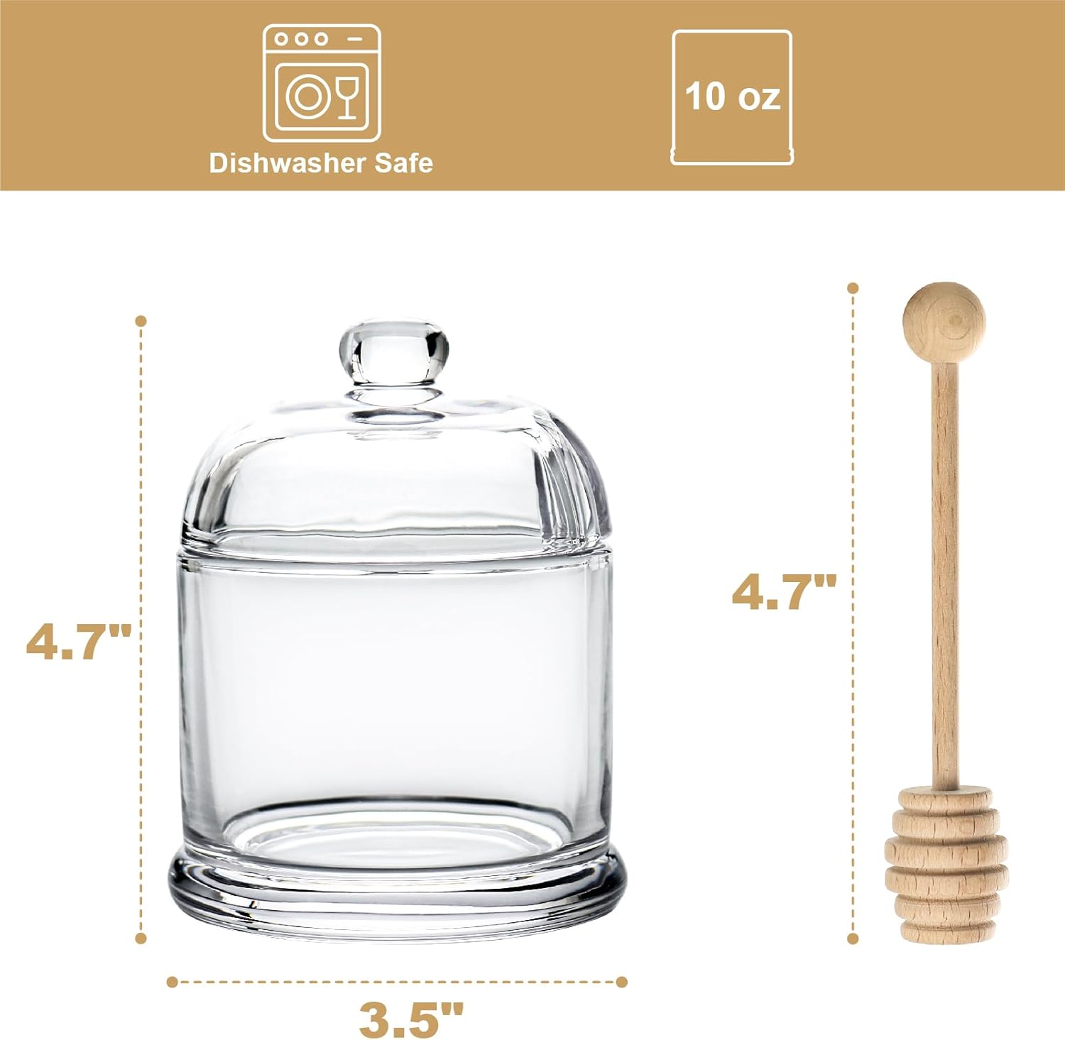 Great Size: Measures 4.7″ H x 3.5″ D, offers 10 oz capacity for honey