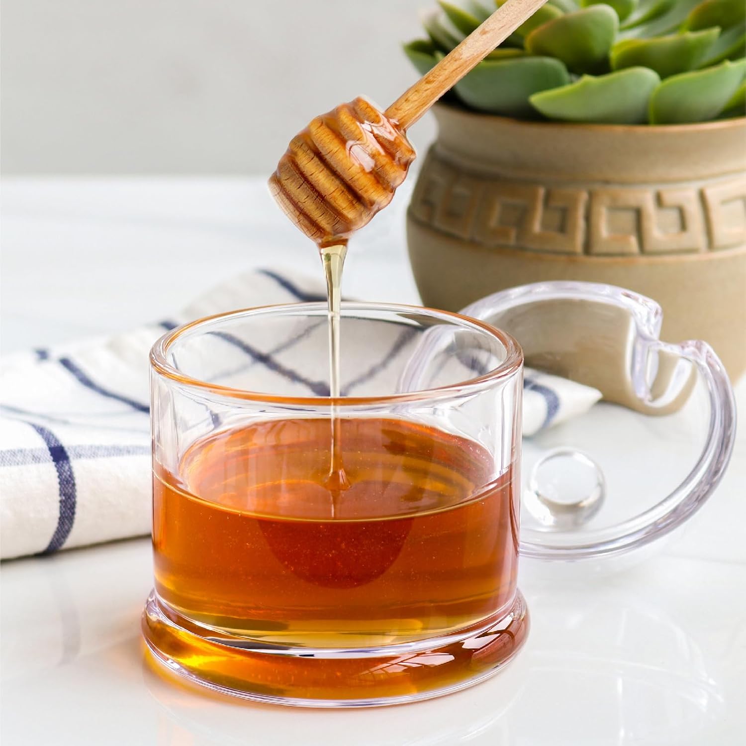 Whether you’re drizzling honey over pancakes, waffles, yogurt, or adding a touch of sweetness to your tea or coffee, this versatile honey pot is the perfect companion.