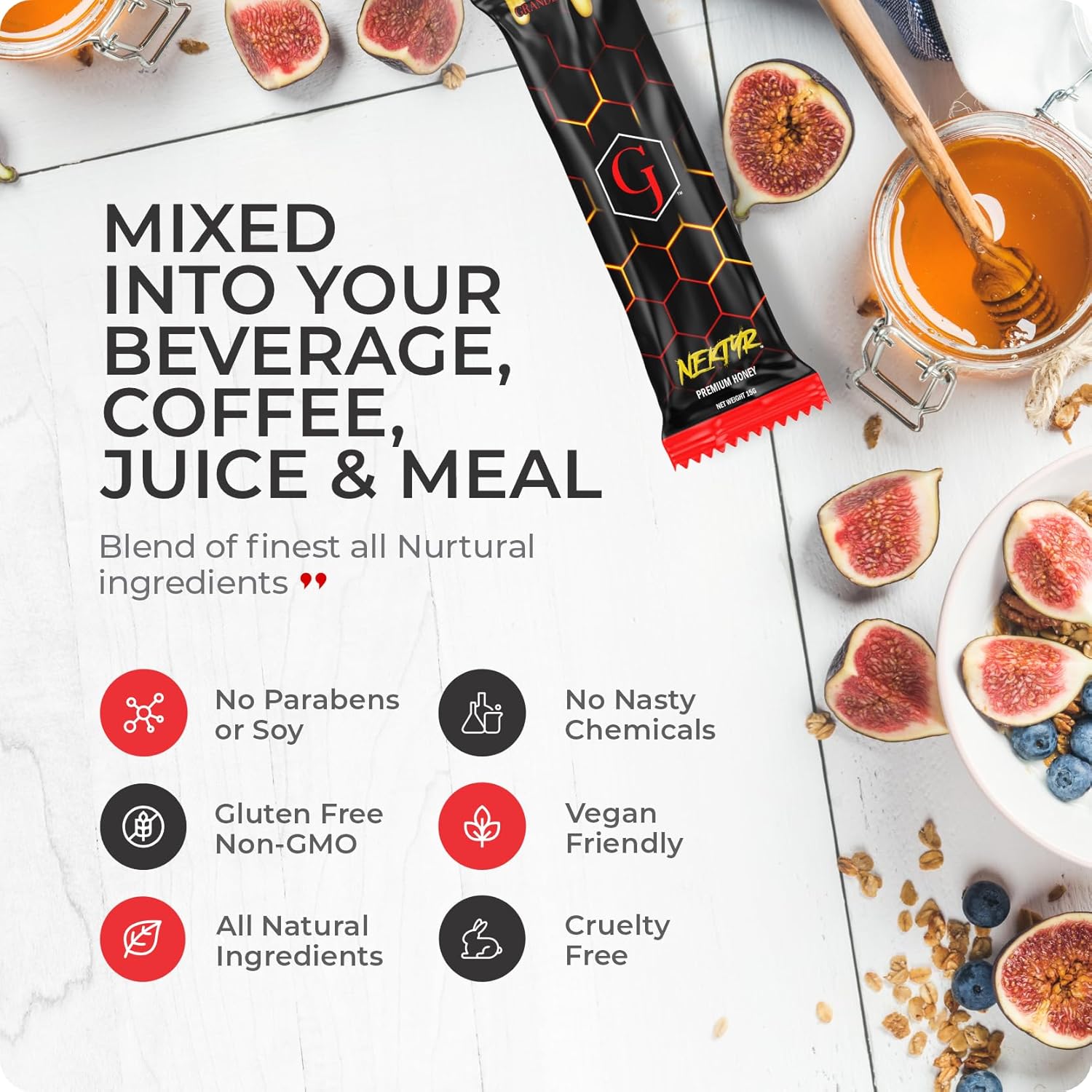 Our premium honey contains no harmful or prohibited ingredients, ensuring a clean and natural experience with every use. As a natural source of energy, Nektyr is a great addition to your daily routine when you need it most.