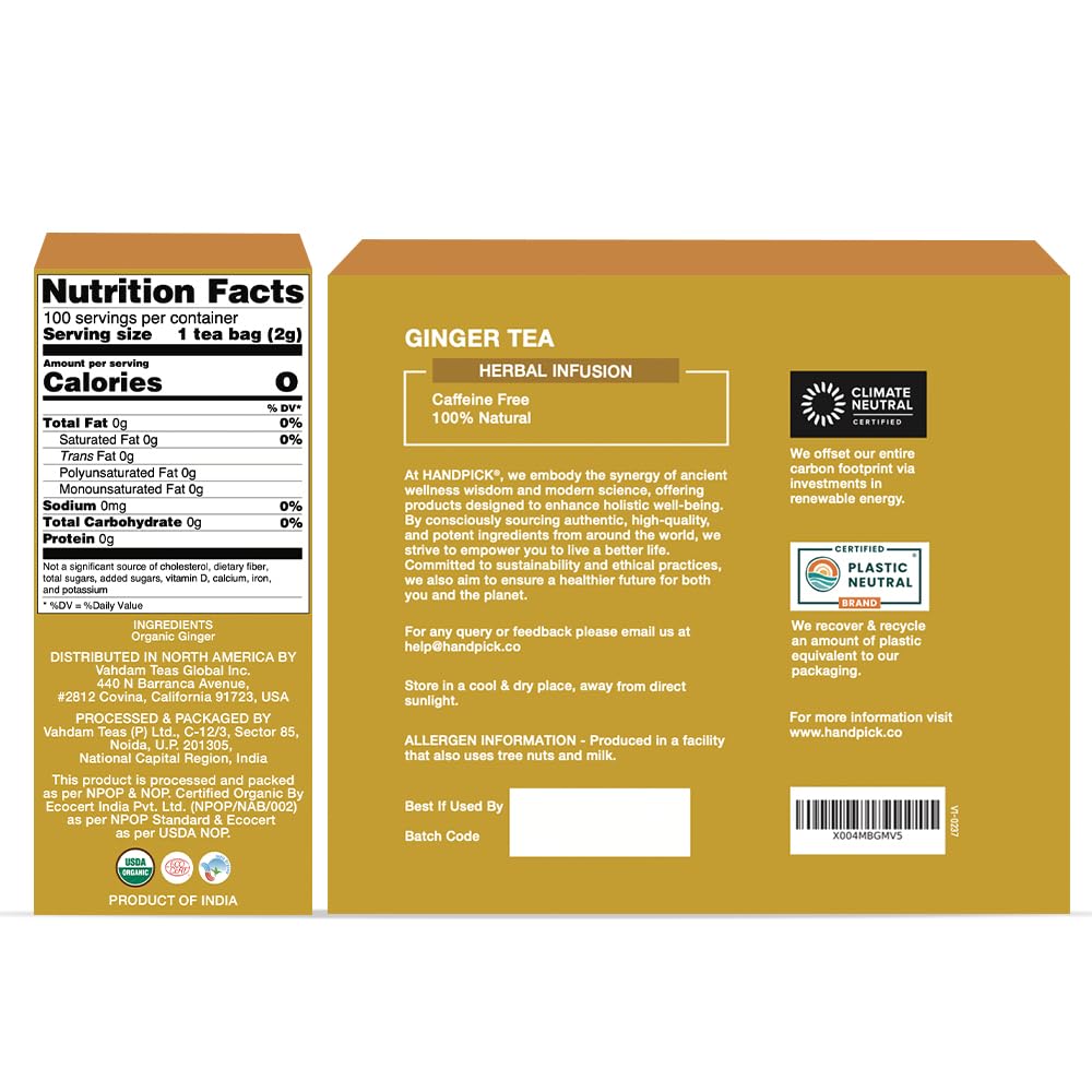 Be the first to review “HANDPICK, Organic Ginger Tea Bags (100 Herbal Tea Bags), Caffeine Free & 100% Pure Ginger Root |Soothing & Spicy Blend | Round Eco Conscious Teabags”