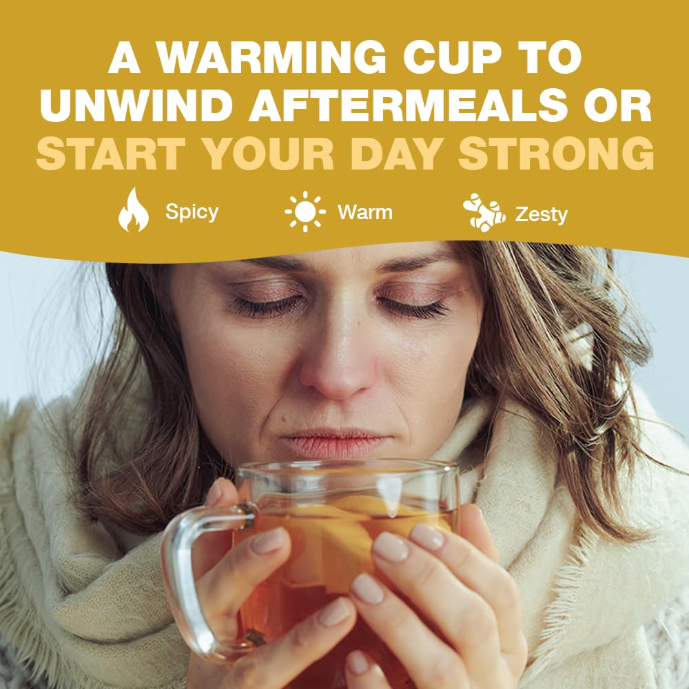 DELICIOUS GINGER TEA – Embrace the goodness of nature with each sip and savor a truly enchanting tea experience.With its invigorating aroma and spicy notes, this caffeine-free and gluten-free tea is perfect to sip-on.Crafted with care, our eco-conscious herbal tea blend features 100 round tea bags, offering you a comforting experience every time.