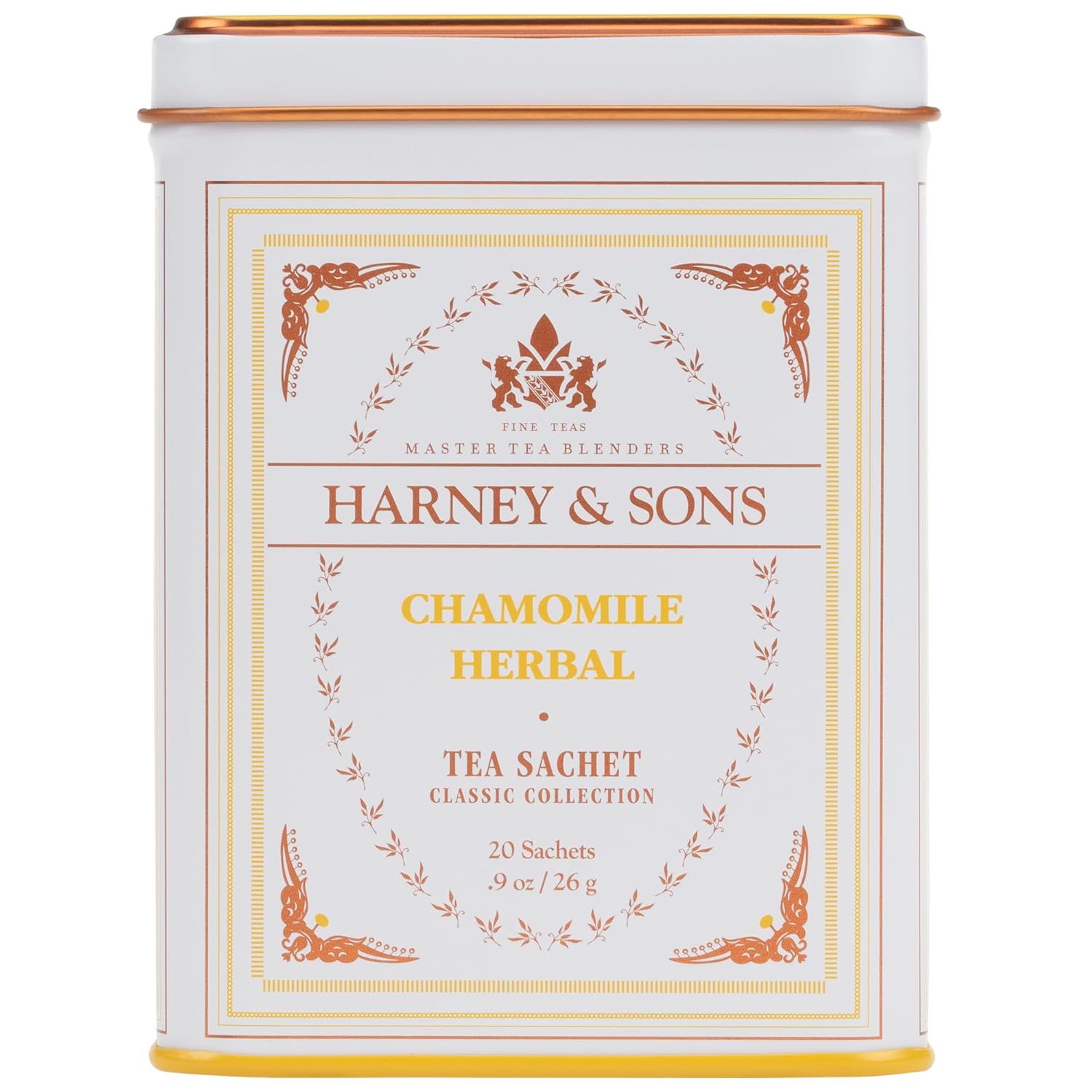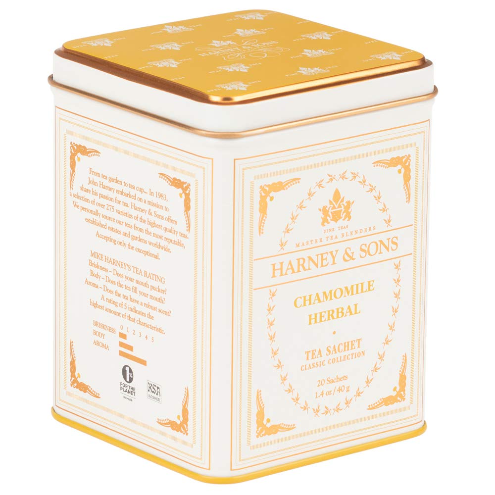Harney & Sons sources only the finest chamomile flowers, of which we use only flower heads, from Egypt. The result? A premium herbal tea with definite body. Classic tin of 20 sachets. Each tea sachet brews a 12 oz cup.