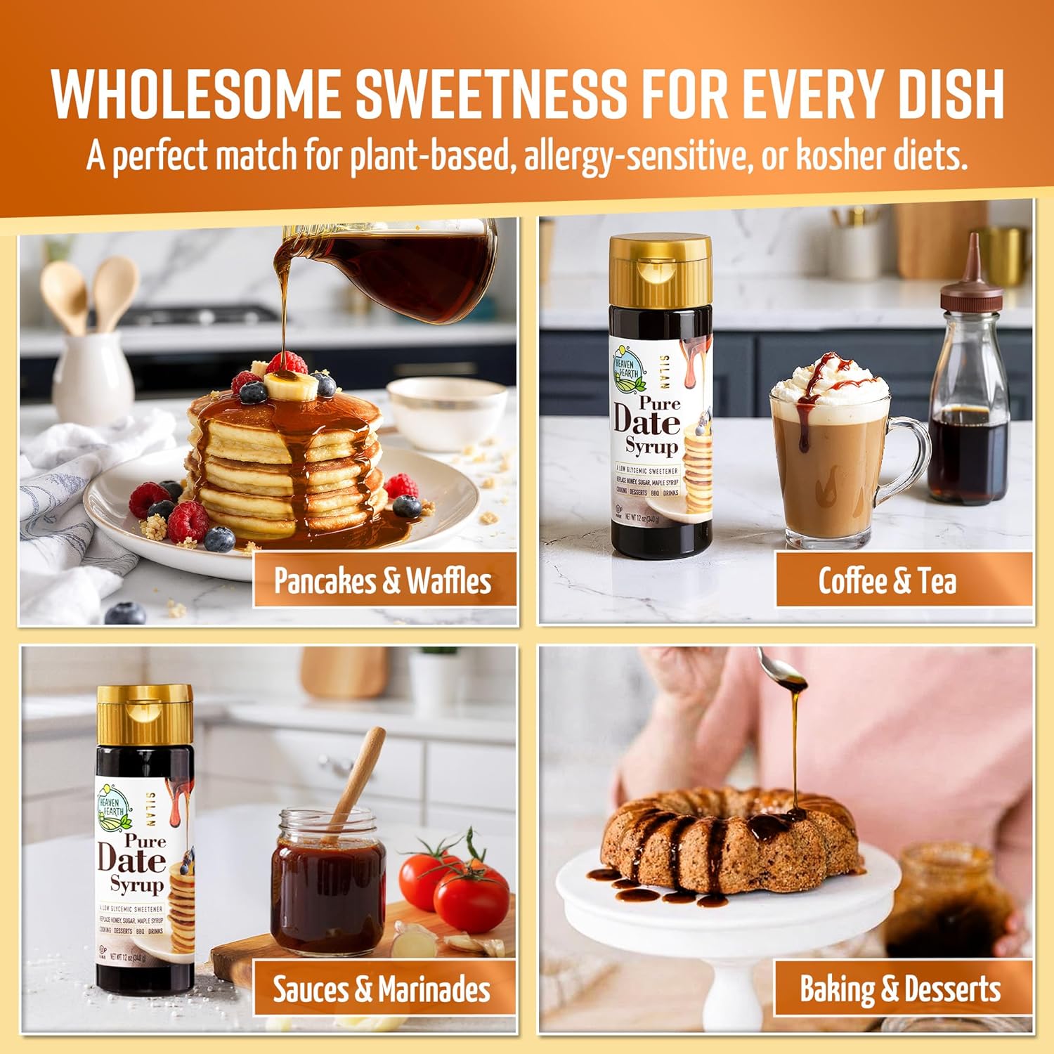 ENDLESS OPTIONS – Pour over your pancakes & waffles, add to your coffee & tea, or use in your desserts & cooking sauces, our date syrup a great way to add more natural sweetness to just about anything!