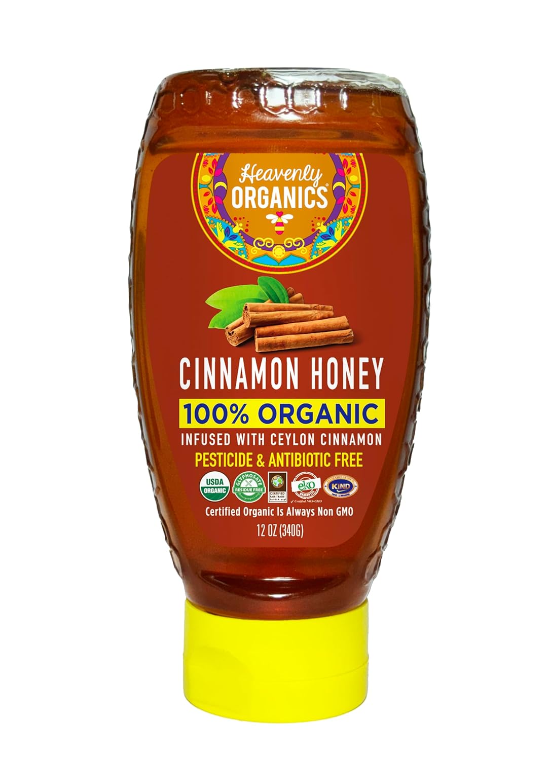 Be the first to review “Heavenly Organics 100% Organic Cinnamon Honey Infused with Cinnamon, Lightly Filtered to Preserve Vitamins, Minerals and Enzymes; Made from Wild Beehives & Free Range Bees, Chemical , Antibiotic and Glyphosate frees; Fair traded , Kosher, 1Pack-12Oz Squeeze ,”
