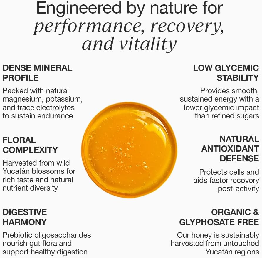 ORGANIC HONEY ENERGY GEL FROM THE MAYAN JUNGLE: HNY+ Energy Gels are made with 100% organic wildflower honey sourced from regenerative farms in the Mayan Jungle, providing quick-acting carbohydrates and antioxidants that support sustained energy during running, cycling, hiking, and endurance training without any crash.