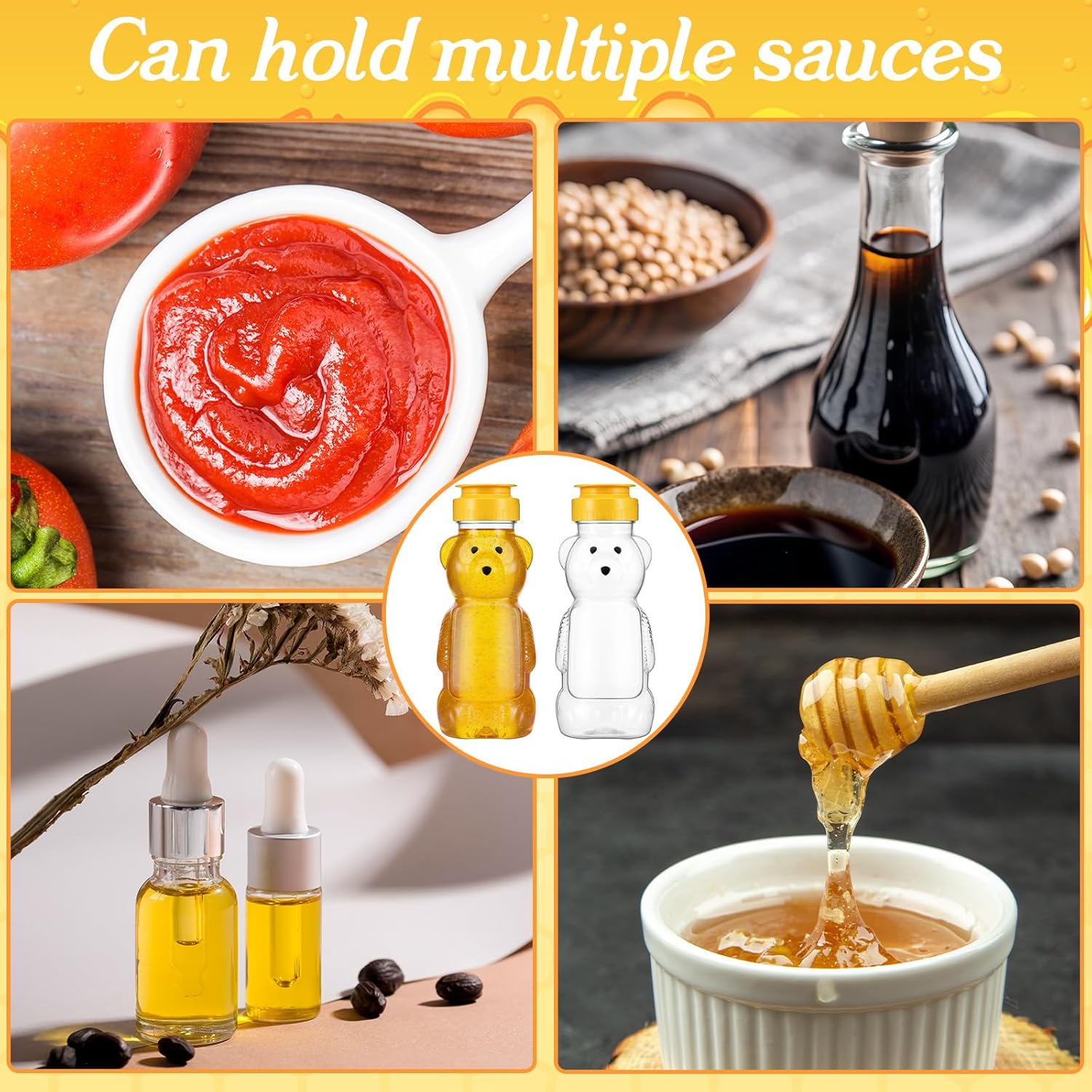 【Versatile Use】This clear empty honey bottle is versatile, serving as a honey dispenser, party favor, event gift, and kitchen organizer. It’s also a perfect gift for friends and family or a fun addition to any occasion