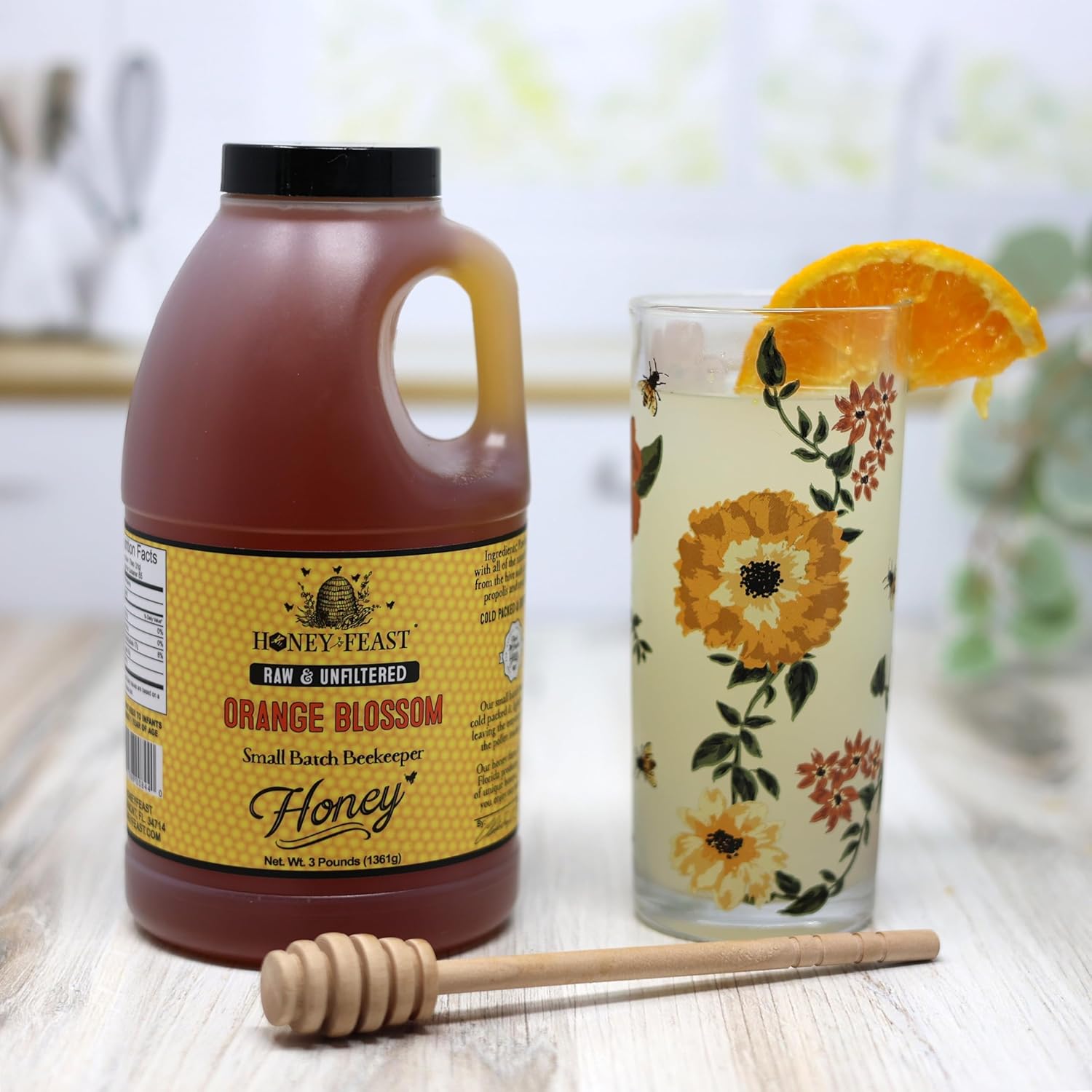 🍯 Authentic Orange Blossom Honey: HONEY FEAST’s raw orange blossom honey is sourced from the nectar of blossoming orange trees, providing a rich and unique citrus flavor. Our 3-pound honey jar is the perfect addition to your pantry or a thoughtful gift for any honey enthusiast.