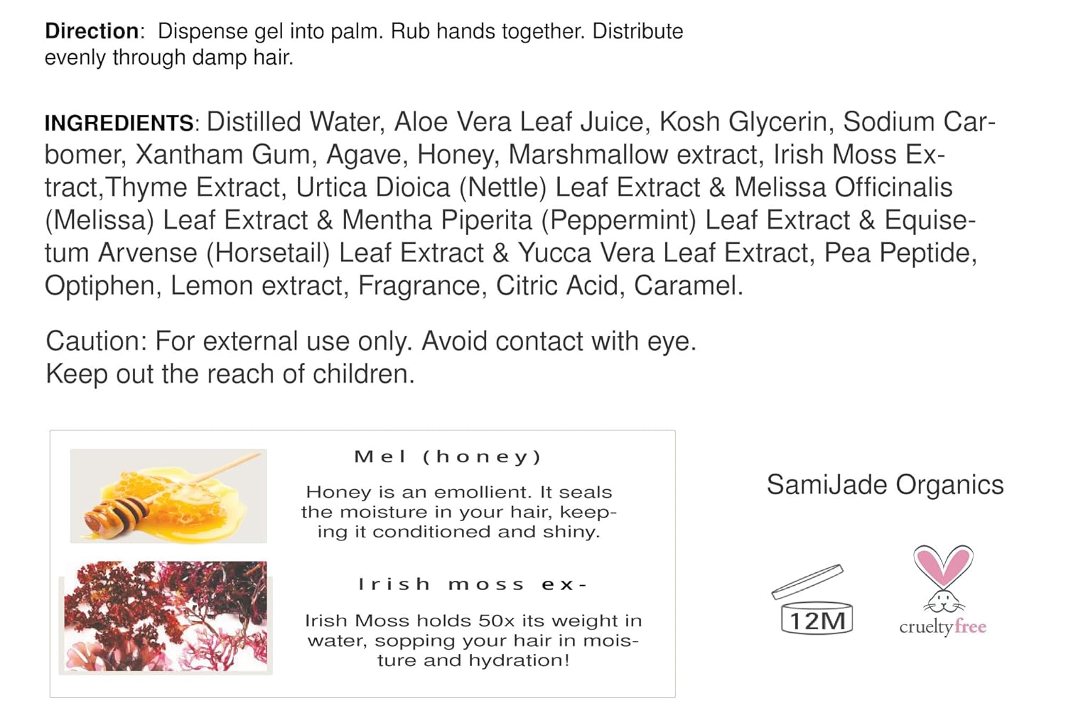 ACTIVE INGREDIENTS: Formulated with honey and Irish moss extracts for superior hair styling and nourishment
