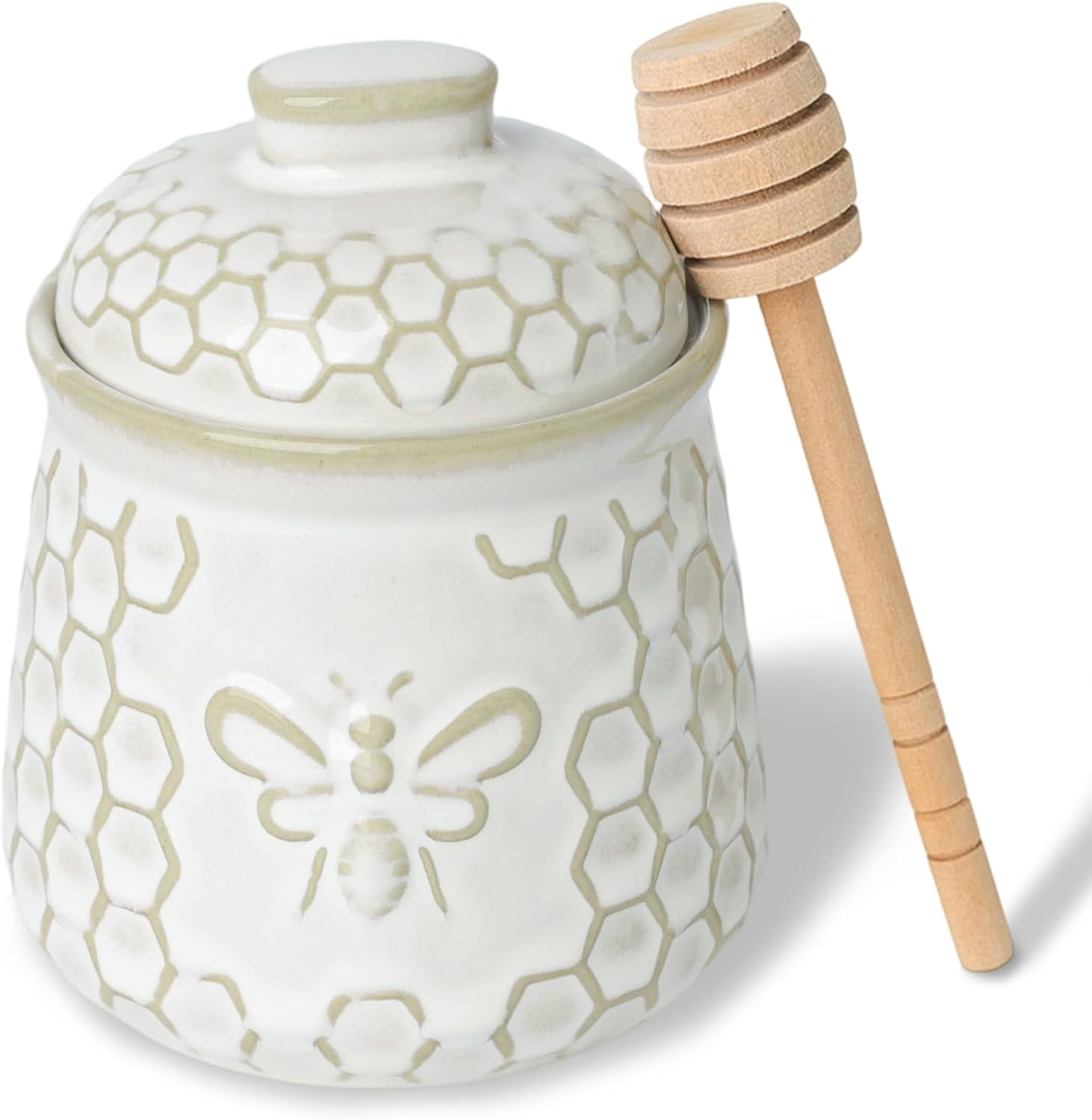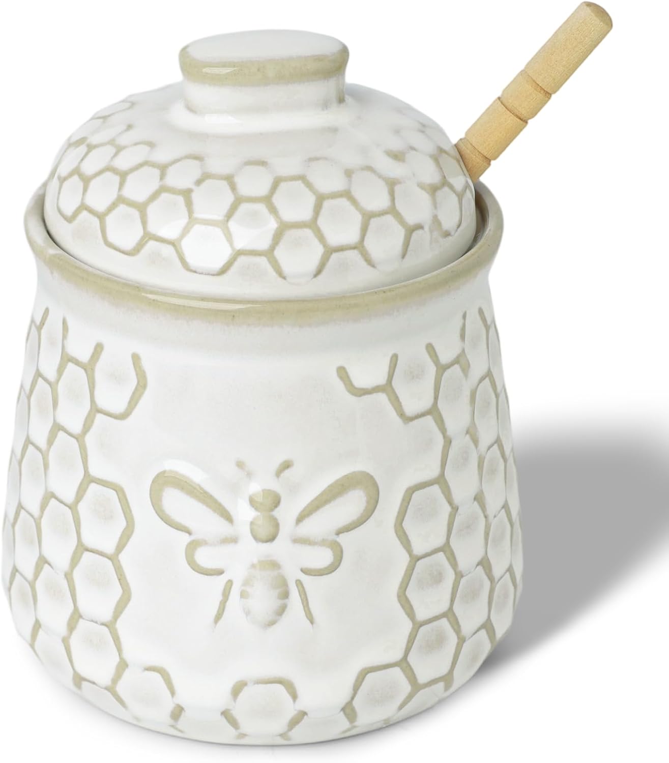 Be the first to review “Honey Jar with Dipper and Lid, 10 OZ Ceramic Honey Pot With Bee, Farmhouse Kitchen Decor (Vintage White)”