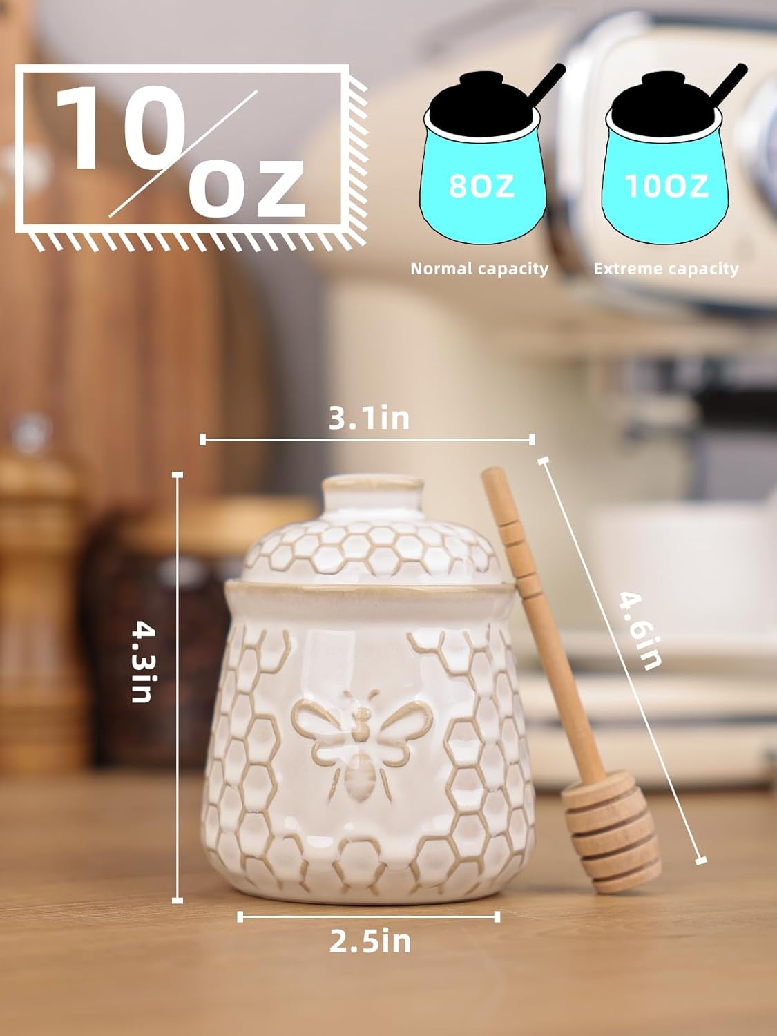 Convenient Dipper Included: Comes with a 4.6in wooden dipper, making it easy to scoop and drizzle honey without mess, ensures just the right amount of honey every time
