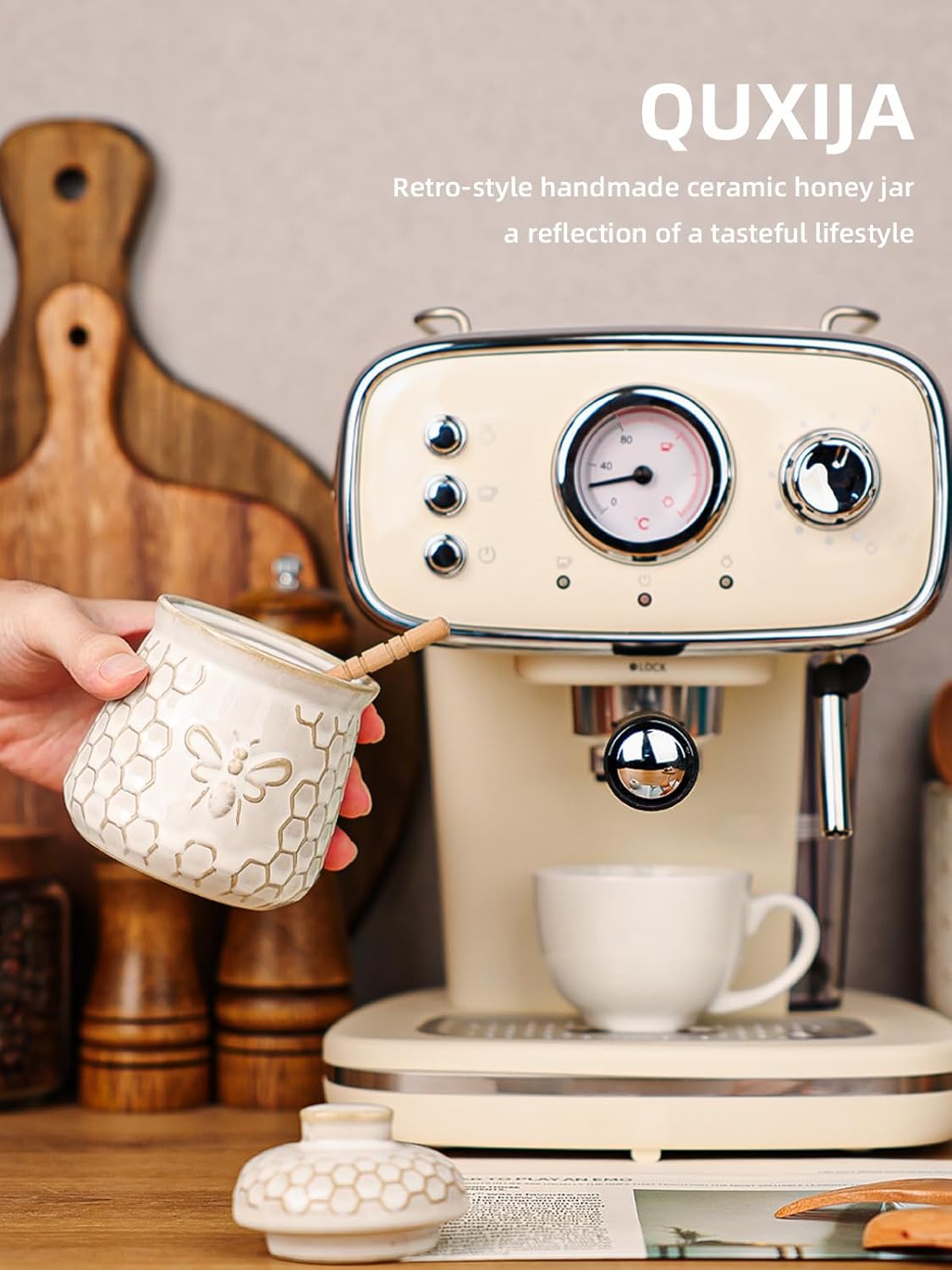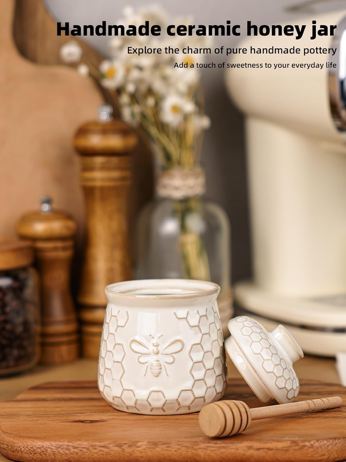 Ceramic Construction: Crafted from ceramic, this jar is sturdy, easy to clean and built to last, maintains the honey’s flavor and texture for a long time