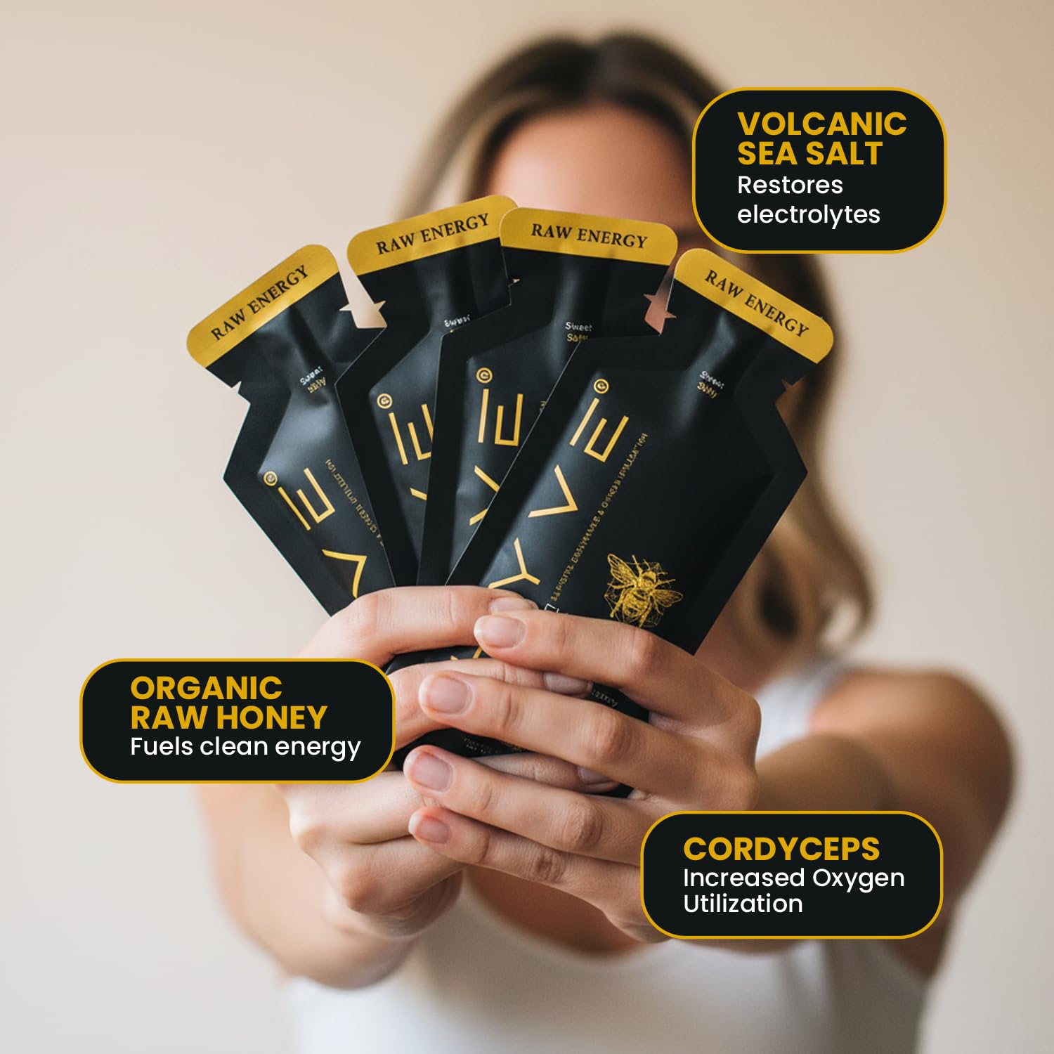 Natural Energy Boost: Infused with organic honey, Black Lava Sea Salt, and Cordyceps mushrooms to support elevated energy levels and enhance athletic endurance.