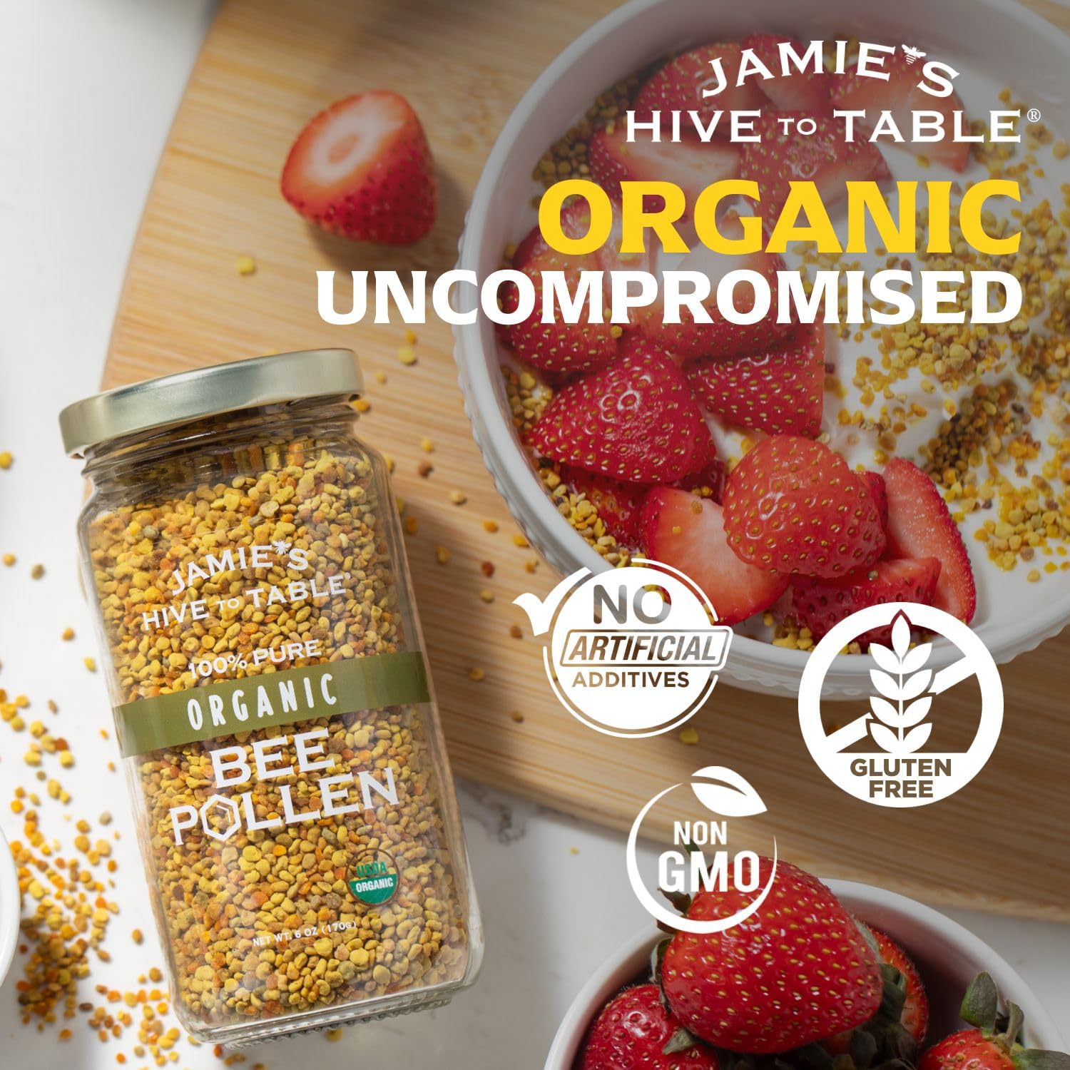 Be the first to review “Jamie’s Hive to Table Organic Bee Pollen, 6 oz – 100% Pure, Raw & Natural Superfood, Premium Quality Bee Pollen Granules for Energy, Immunity, Skin Health, Antioxidants, & Vitality, Gluten Free”