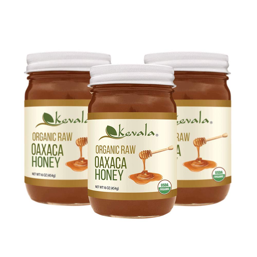 Kevala Organic Raw Oaxaca Honey – 3pack Glass Jar 16 oz, Natural Sweetener for Meals and Drinks with no Pesticides, Pure and Unprocessed Spread for Bread and Toast, Golden Nectar with no Sugar Added