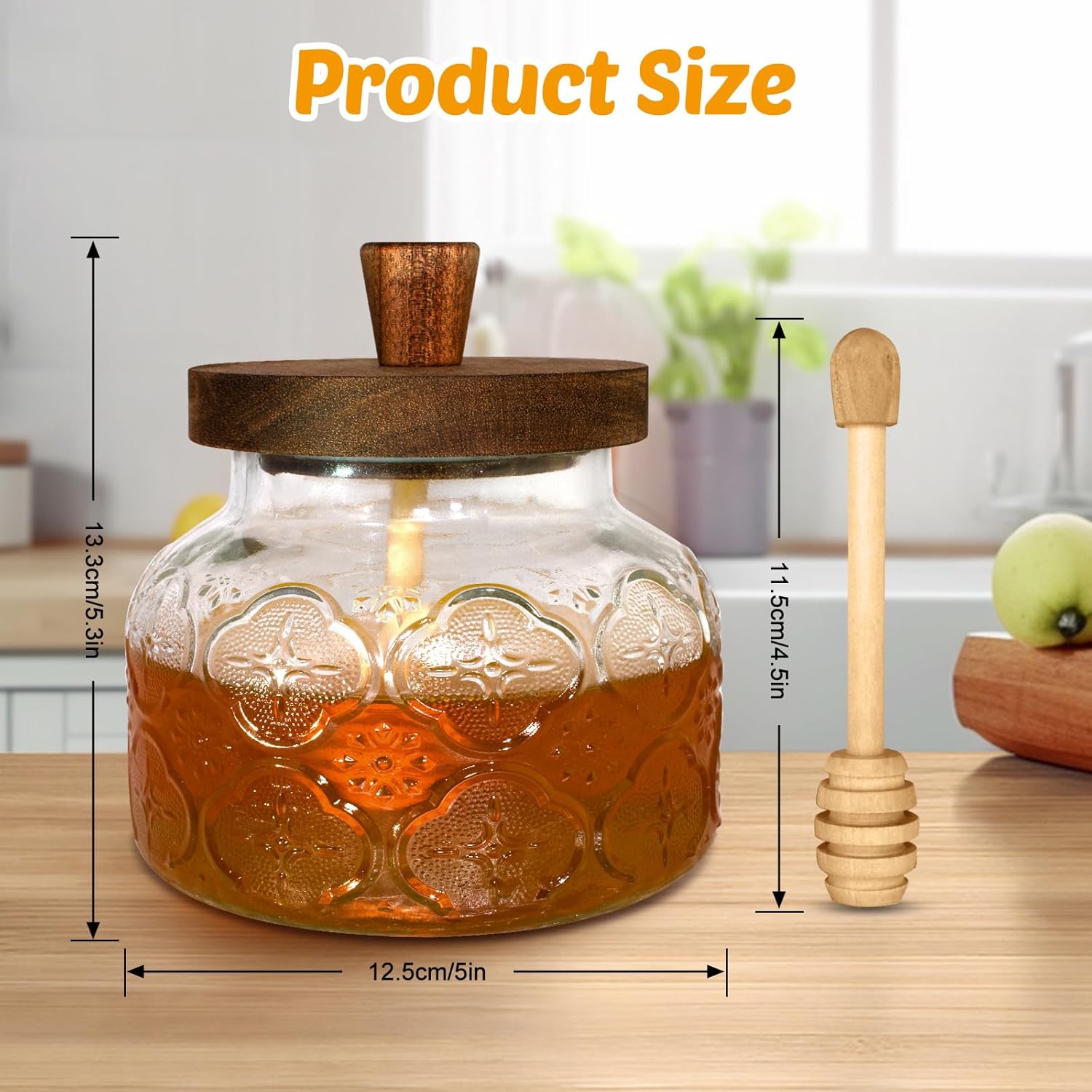 Versatile for Kitchen & Beyond – Ideal for storing and serving not only honey but also maple syrup, jam, candy, nuts, spices, or as a stylish container for DIY crafts. The combination of beauty, functionality, and thoughtful extras makes it a joy to use every day.