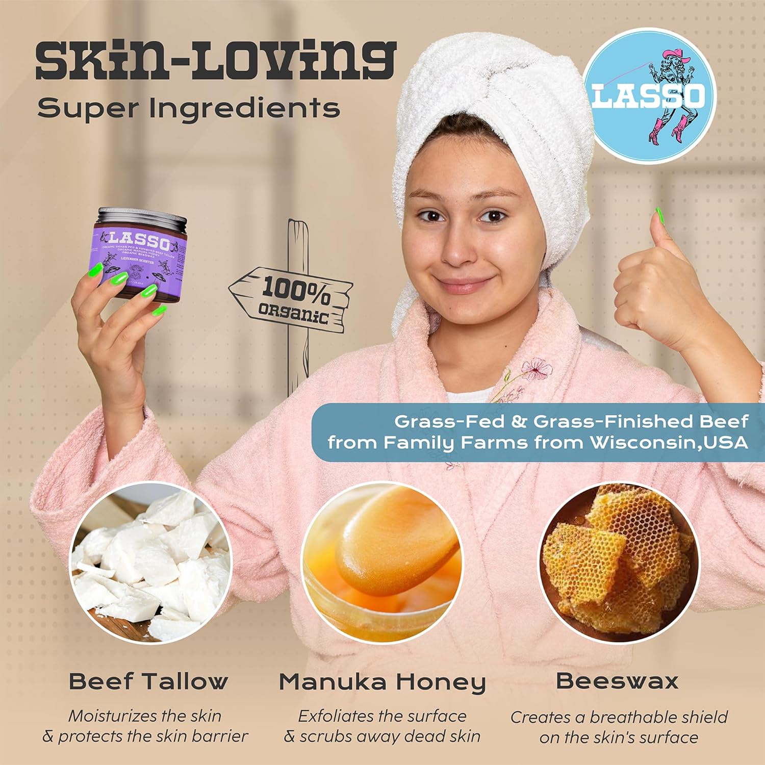Be the first to review “LASSO Lavender Tallow and Honey Balm for Face – Organic Beef Tallow Face Moisturizer with Grass-Fed/Finished Beef for Skin, Organic Manuka Honey and Beeswax”