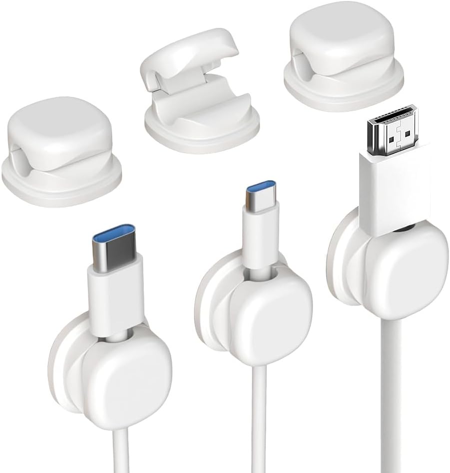Innovative Magnetic Cable Clips: Our magnetic cable clips feature a 60° rotating shaft with a secure magnetic closure, allowing easy one-hand cable insertion or removal. Unlike traditional desk accessories, this smart design ensures quick access to cords while keeping your workspace tangle-free.