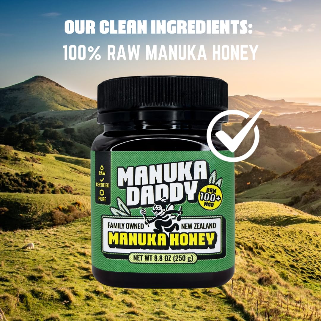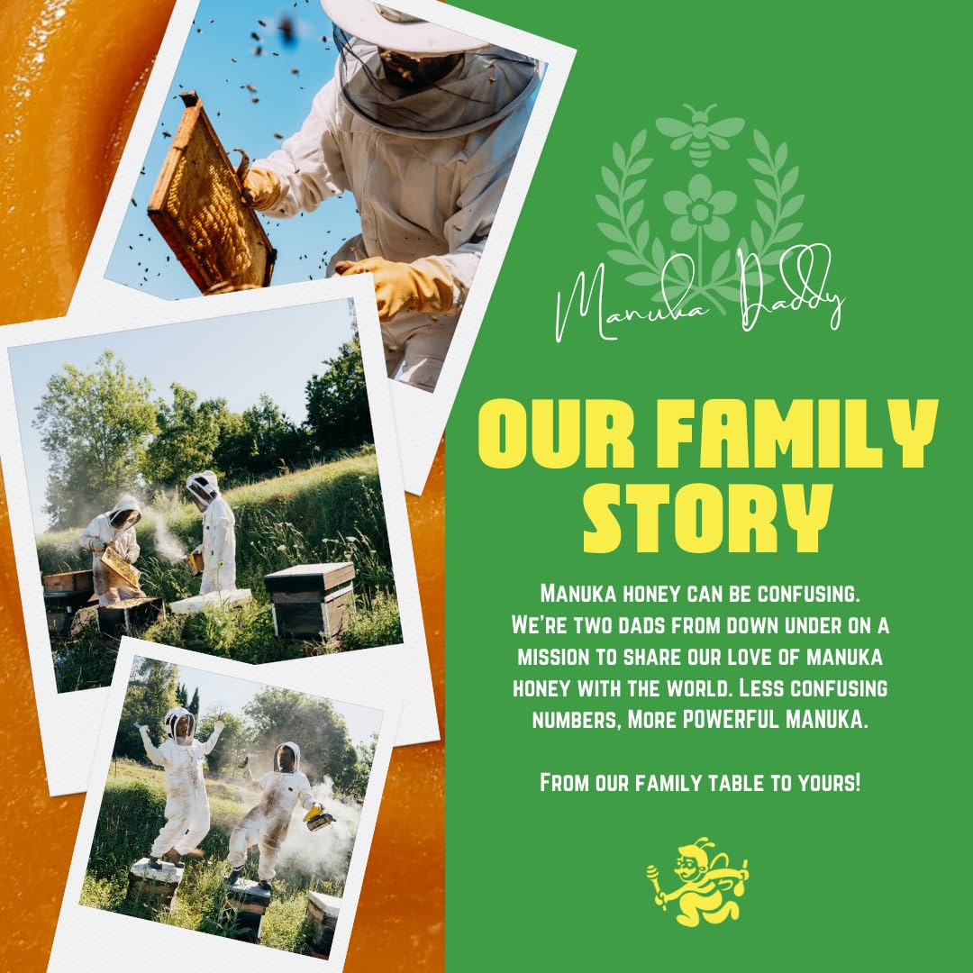 Simple, Honest & Family-Crafted: Founded by two dads tired of confusing labels, Manuka Daddy keeps it transparent: potent MGO 100+ honey, no mumbo jumbo, just pure, powerful natural honey from our family to yours.